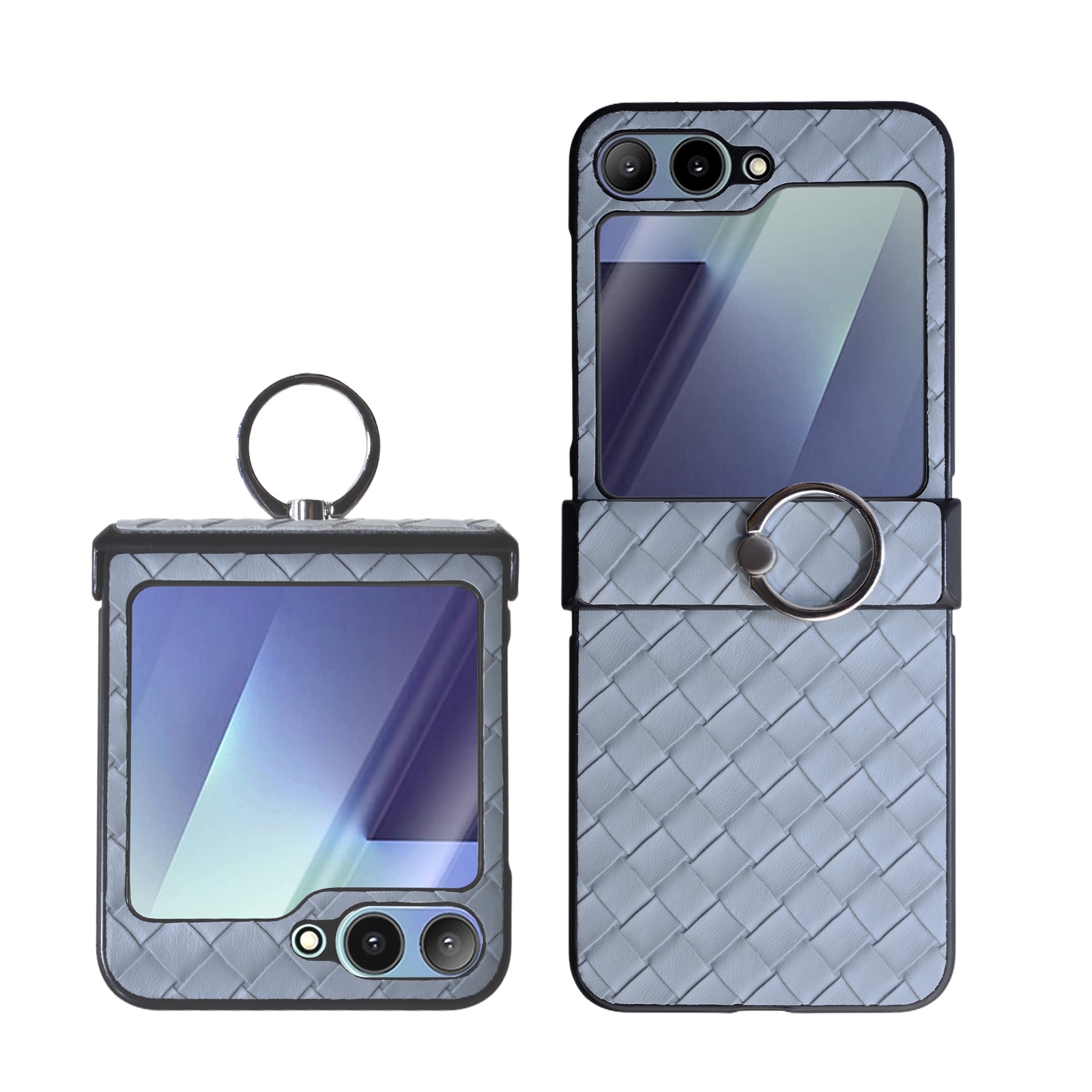 Samsung Z Flip 6 Case with Ring Holder – Gray Plaid Folding Cover