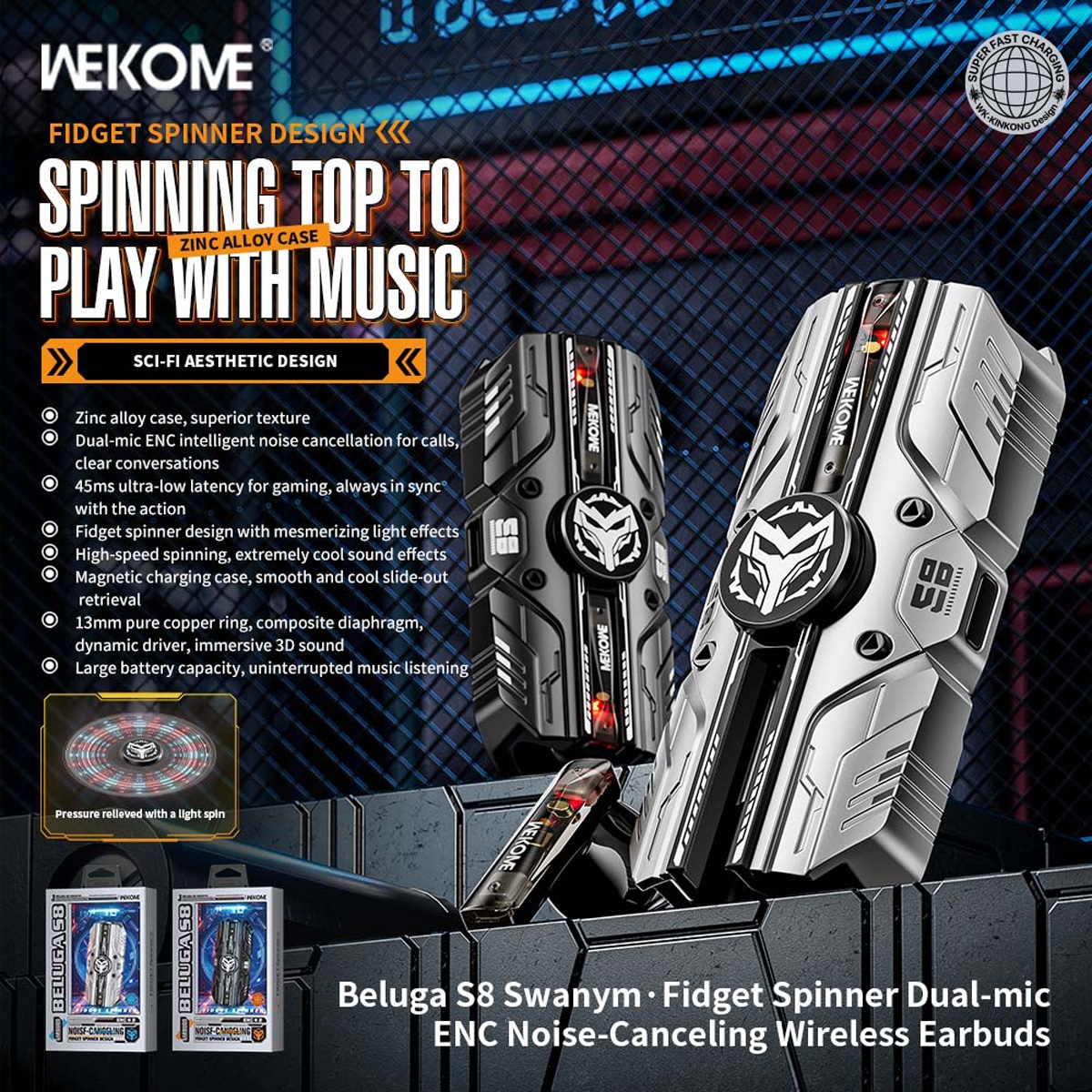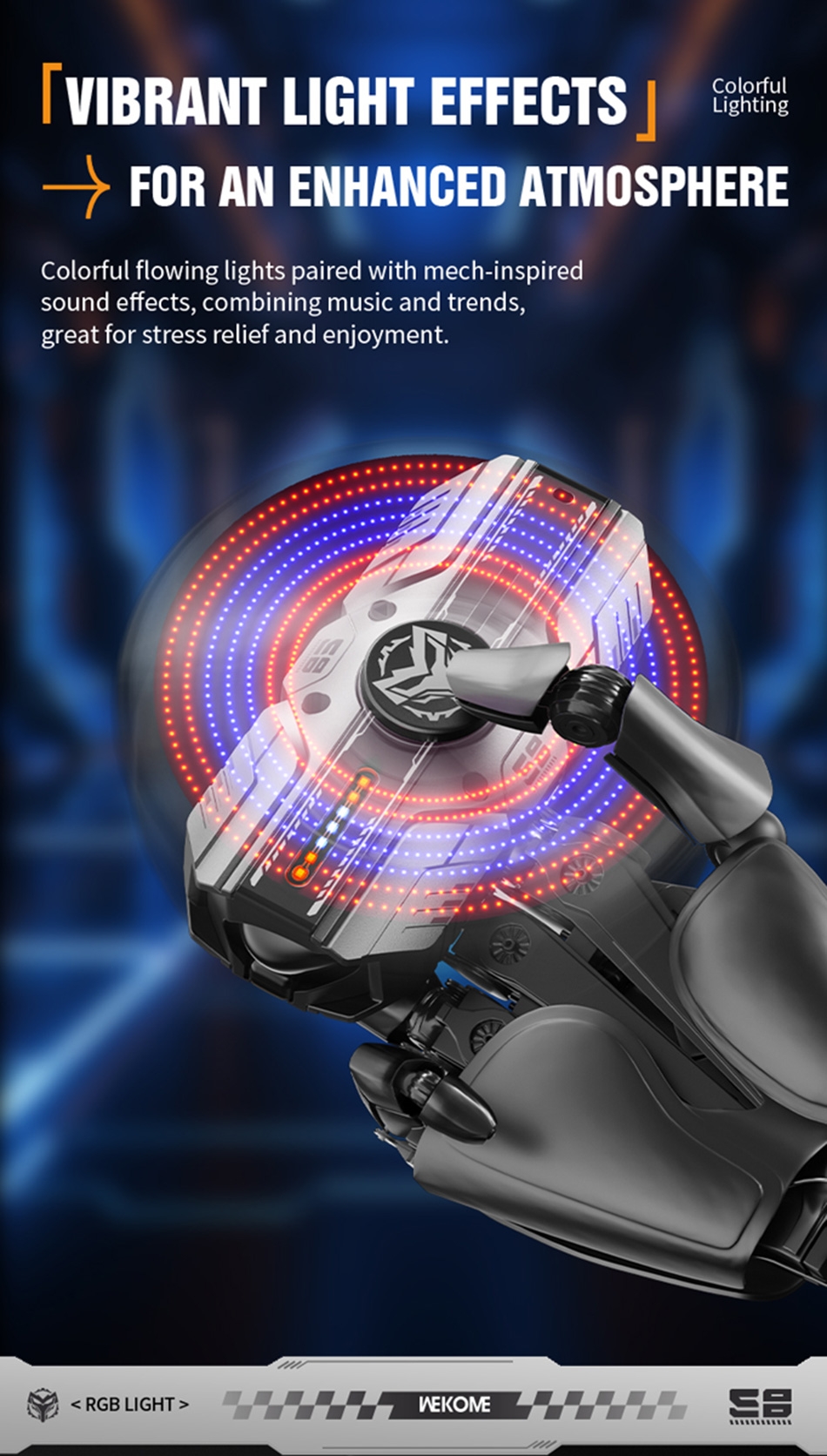 • Unique Mecha Design: Features a zinc alloy mecha-style shell with an integrated fidget spinner. The rotating design provides decompression and visual appeal during use. Includes a magnetic sliding charging case that is compact and easy to carry.