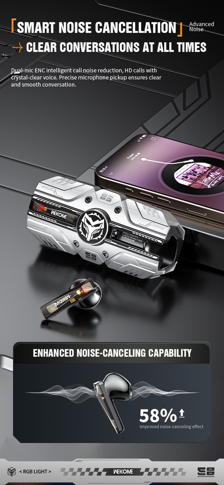 ER-WM-Beluga-S8BK WEKOME Wireless Noise-Cancelling Earphones Silver with ENC, Low Latency - Black (1PCS)