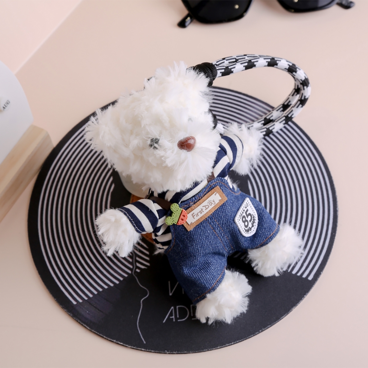 FSH-00018 Denim Teddy Bear Keychain - Plush Cute Fashion Accessory (1PCS)