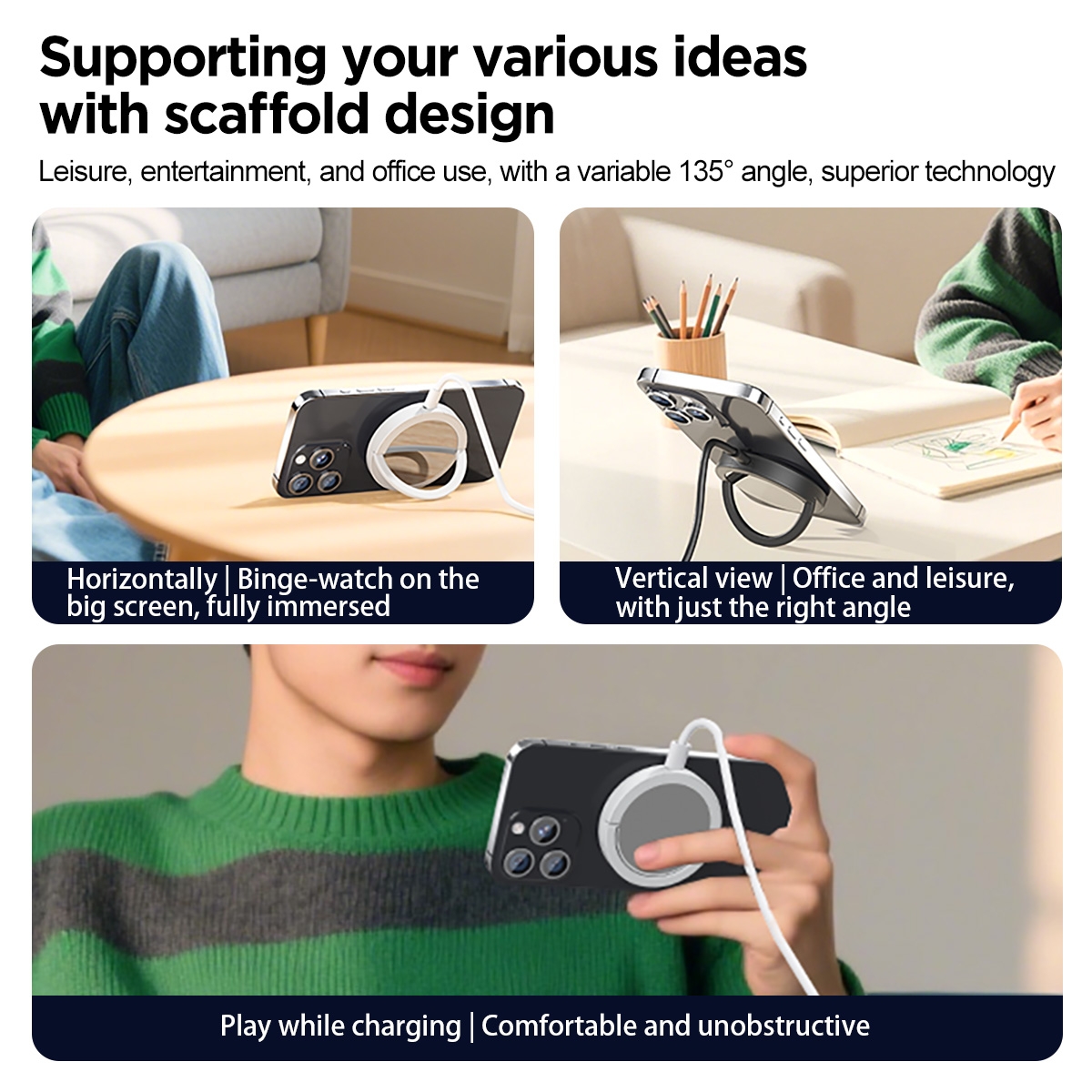 • Wide Compatibility: Works with iPhone 16/15/14/13/12 series and Android phones with magnetic cases.