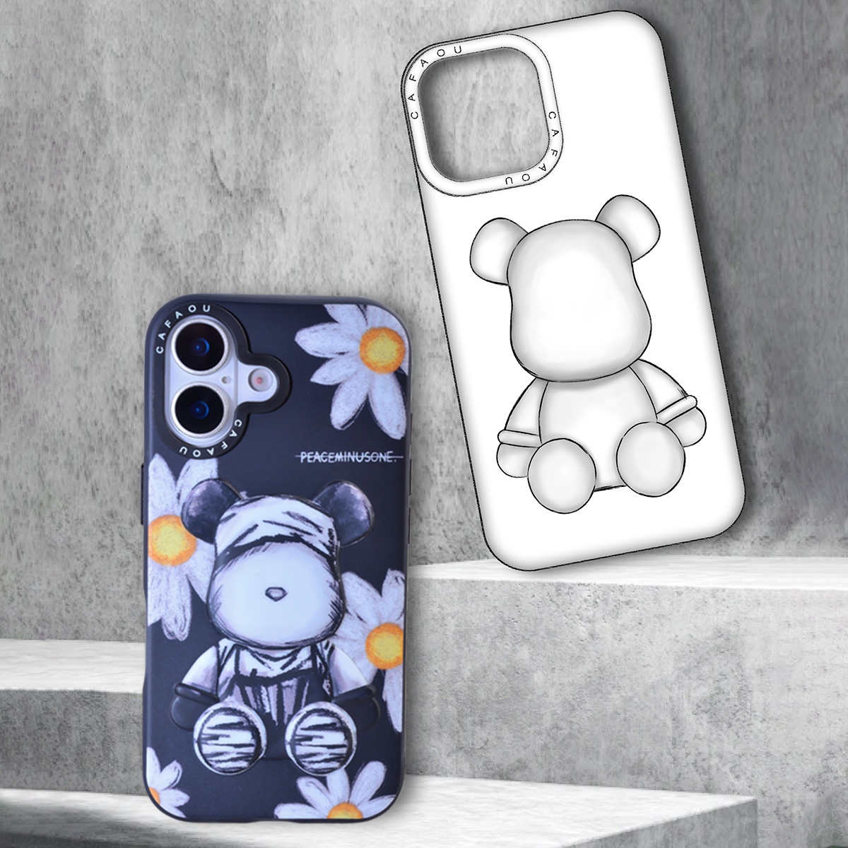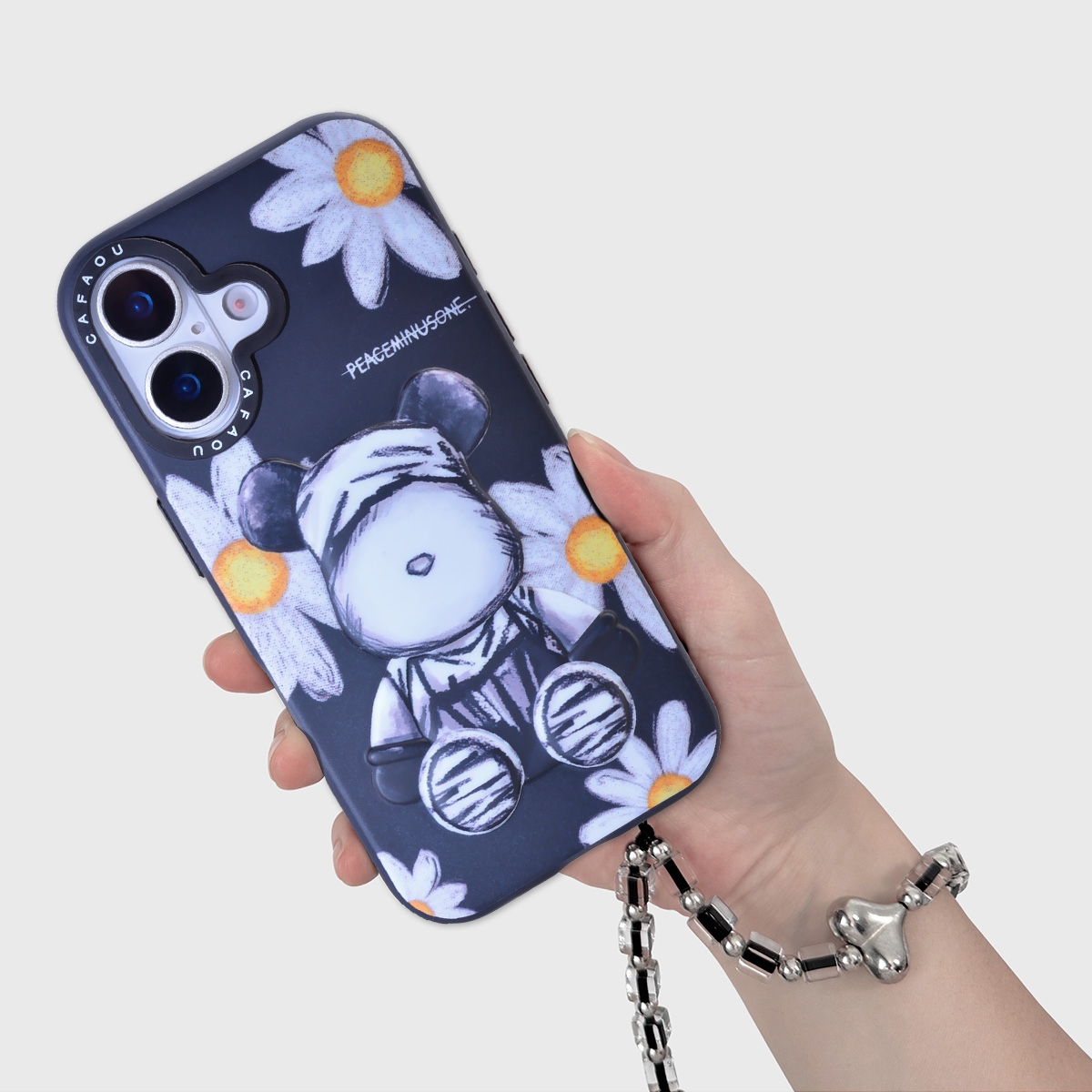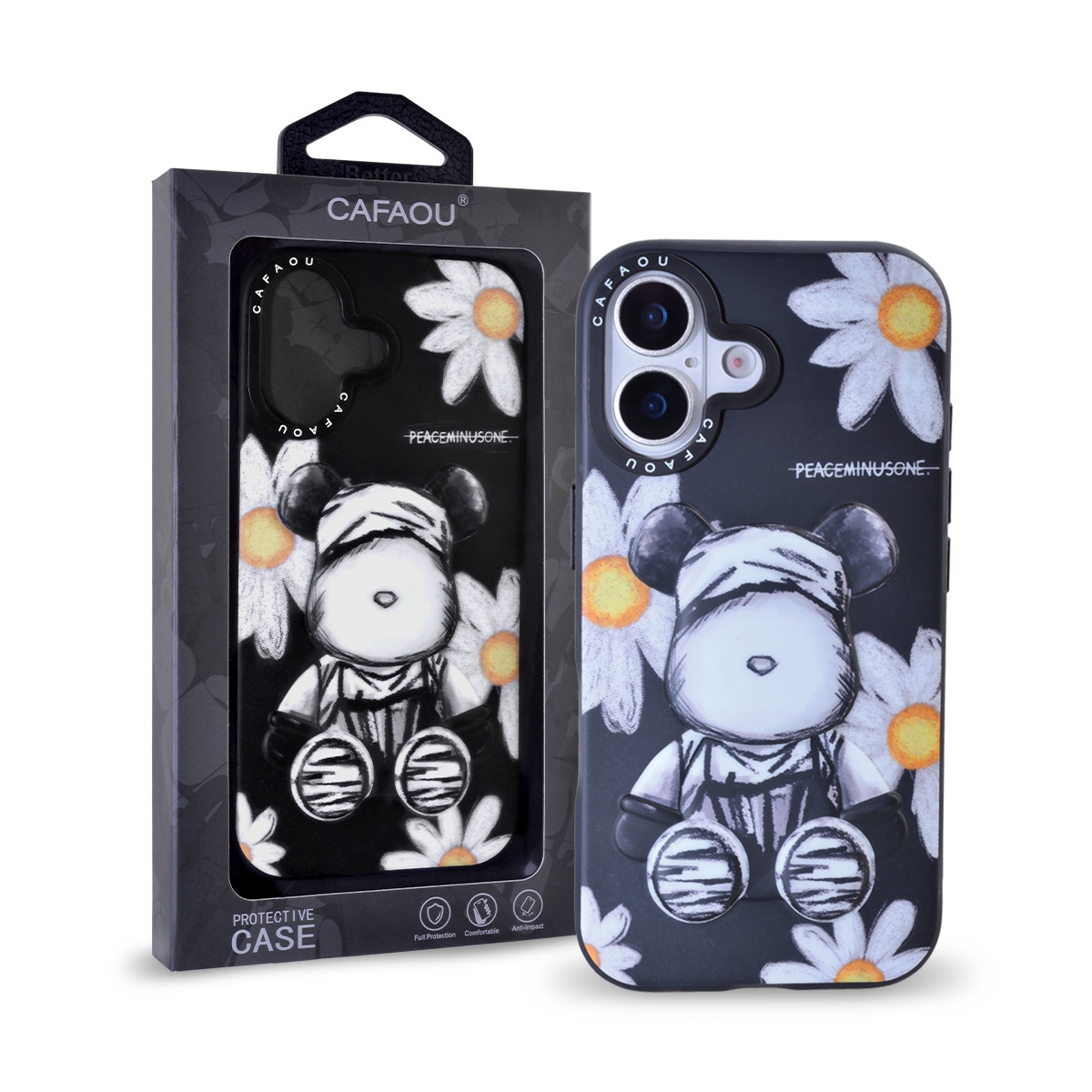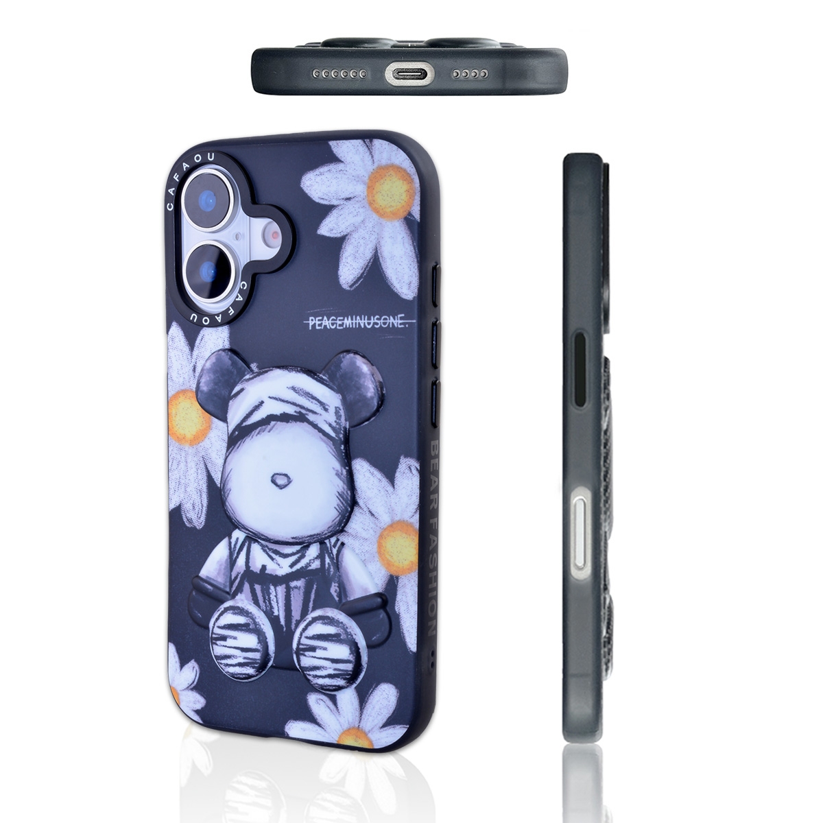 iPhone 16Bear Phone Case - TPU + PC Floral Protective Cover