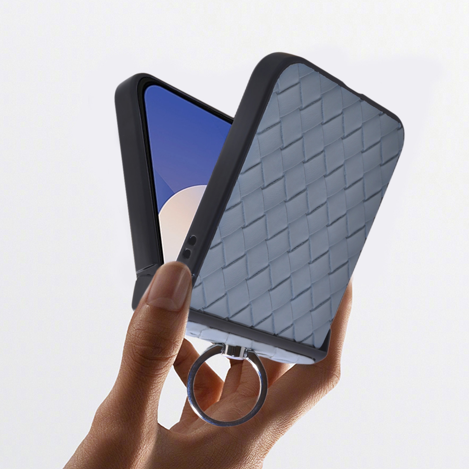 Samsung Z Flip 6 Case with Ring Holder – Gray Plaid Folding Design