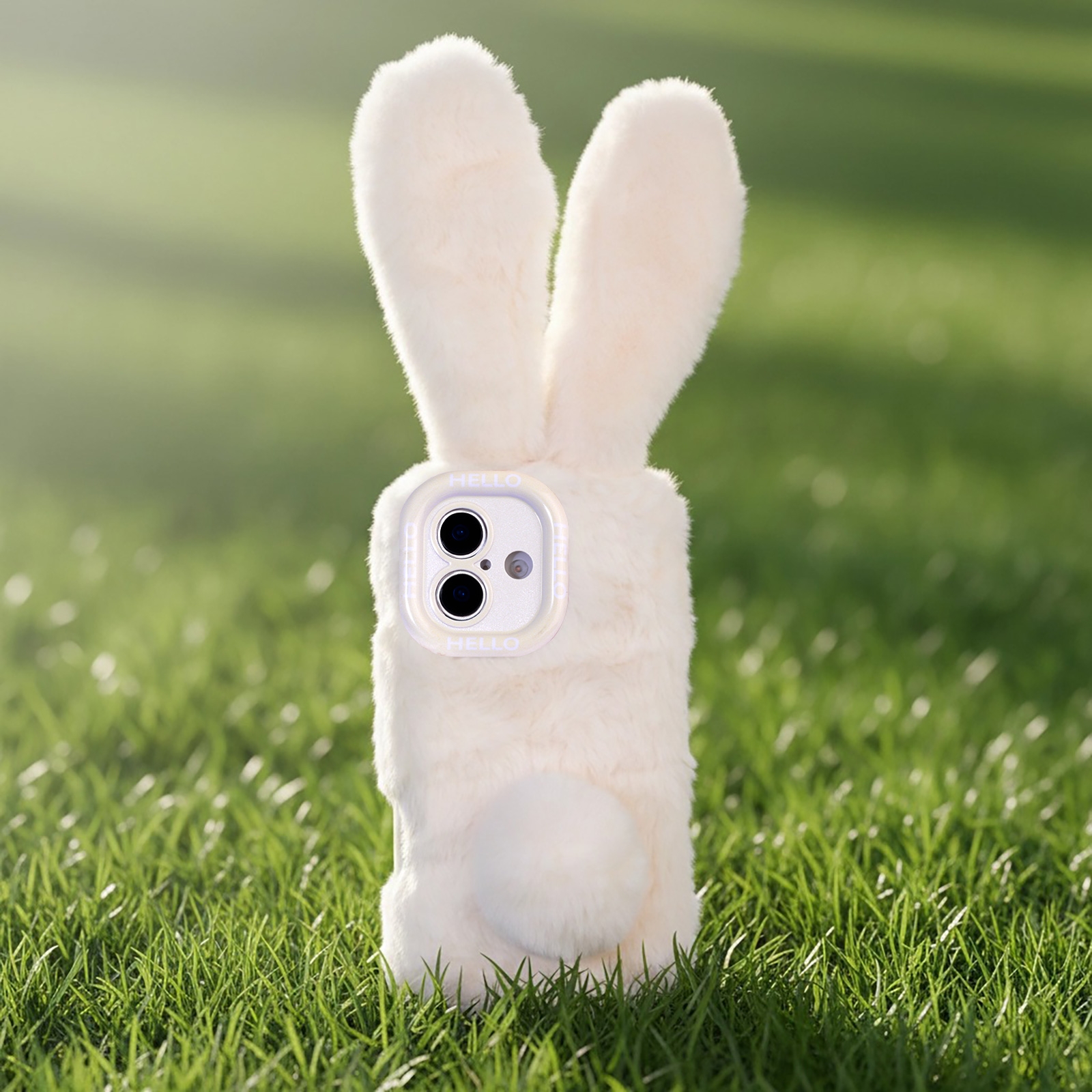 • Soft Plush Exterior: Beige fuzzy surface with rabbit ear and tail details.