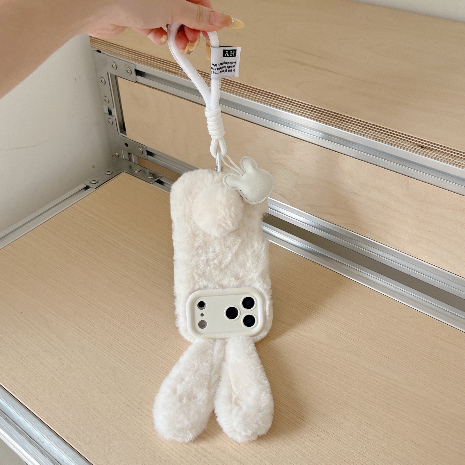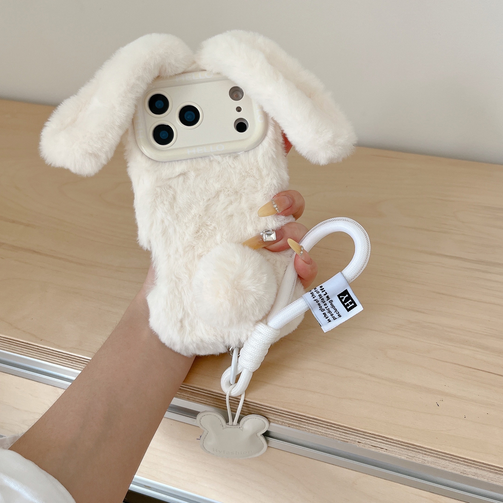 iPhone 17 Pro Rabbit Plush Case – Beige Protective Design