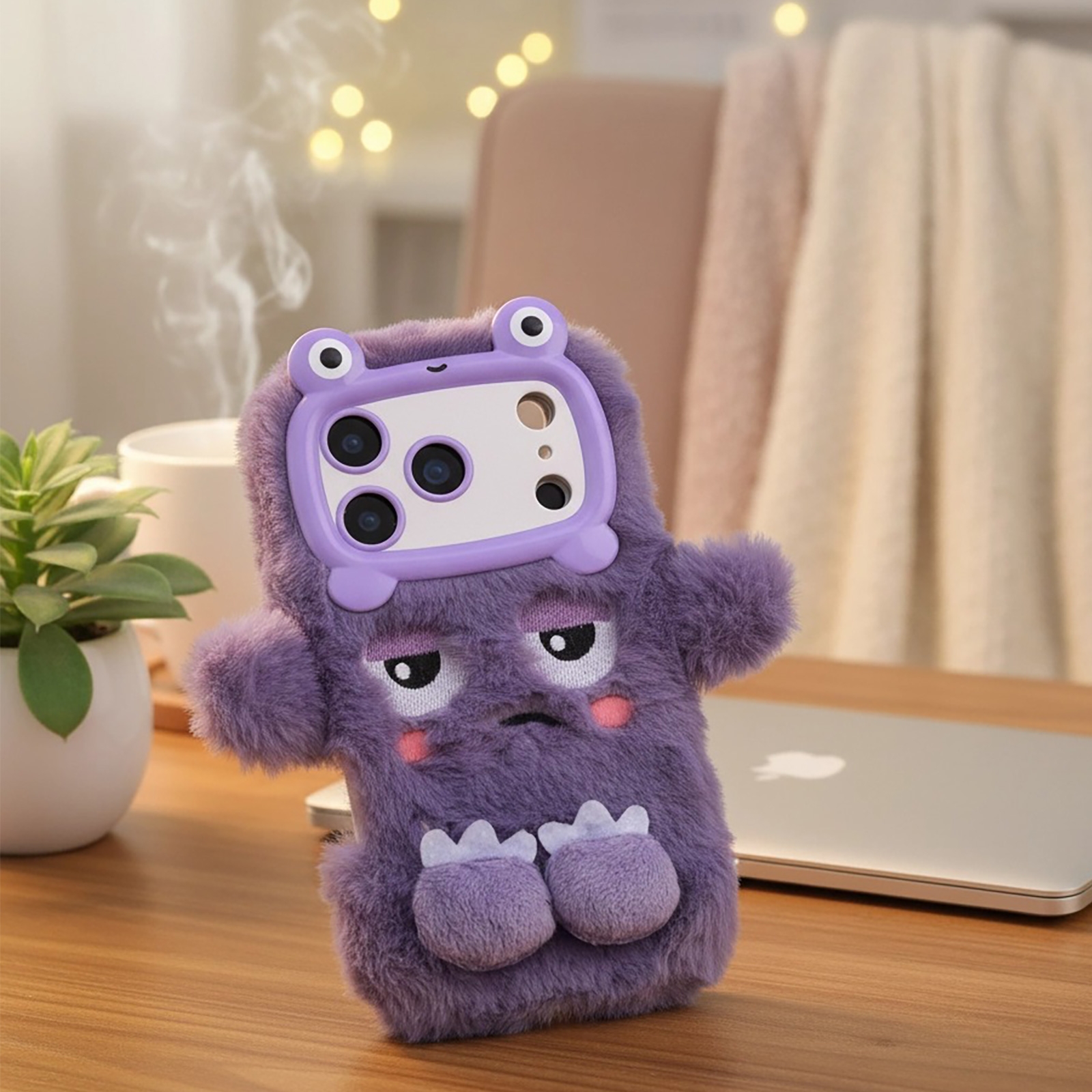 iPhone 17 Pro Plush Phone Case – Purple Monster Design