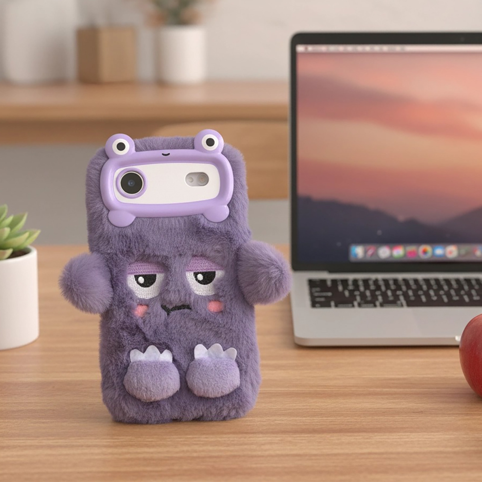 iPhone 17 Air Plush Phone Case – Purple Monster Design
