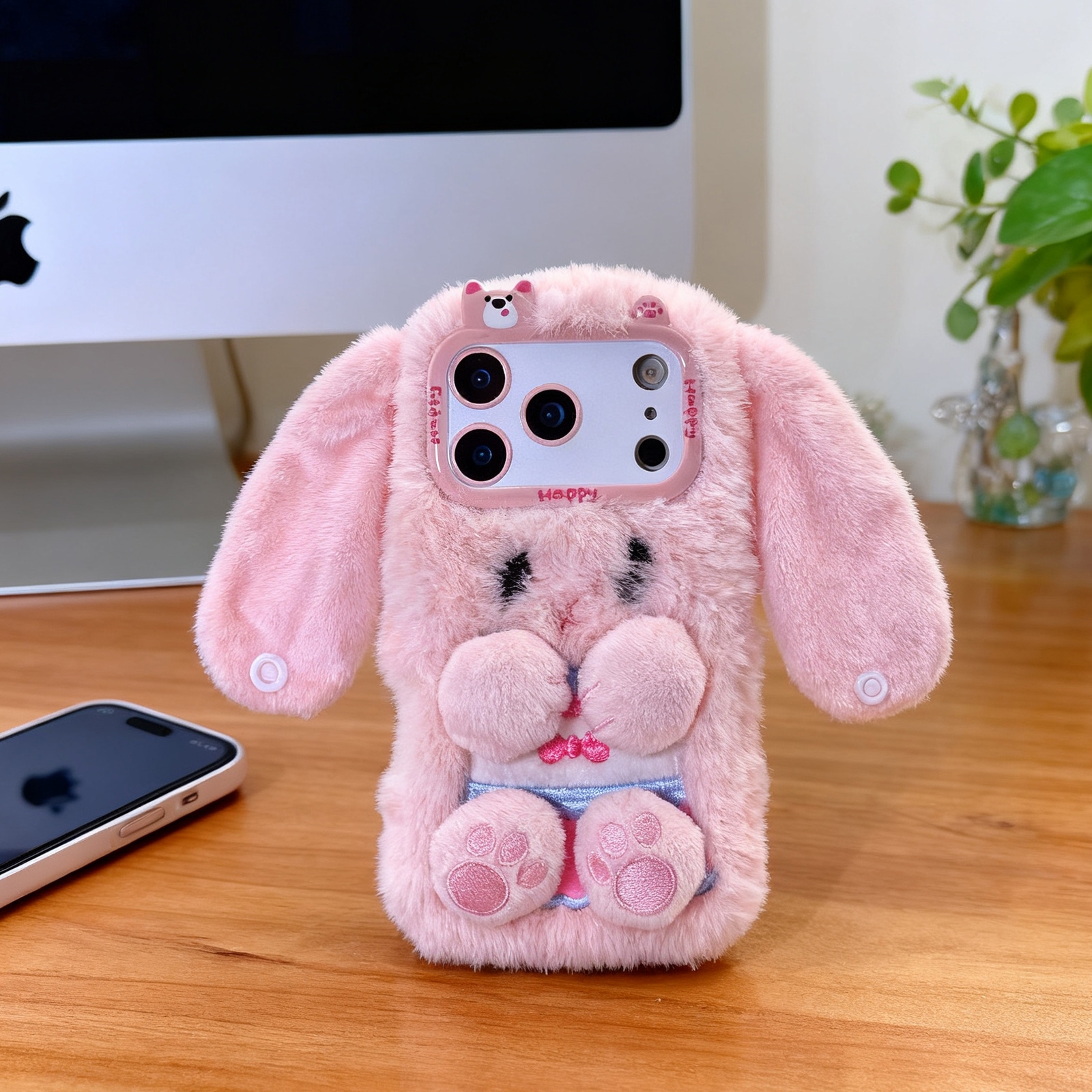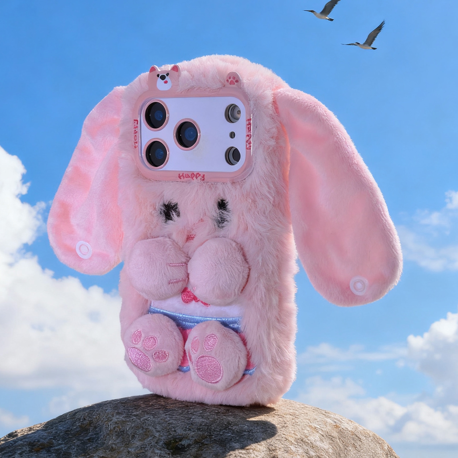iPhone 17 Pro Max Plush Bunny Case – Soft Pink Protective Cover