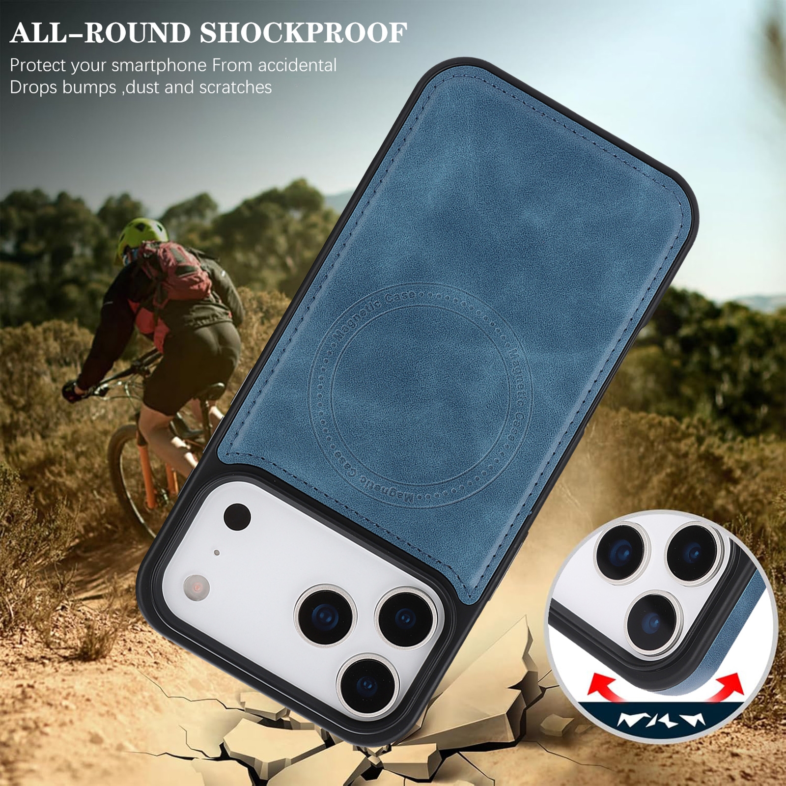 MT-TC-IP-00149BU iPhone 17 Pro Max Magnetic Case Blue – Vegan Leather Shockproof MagSafe Cover (1PCS)
