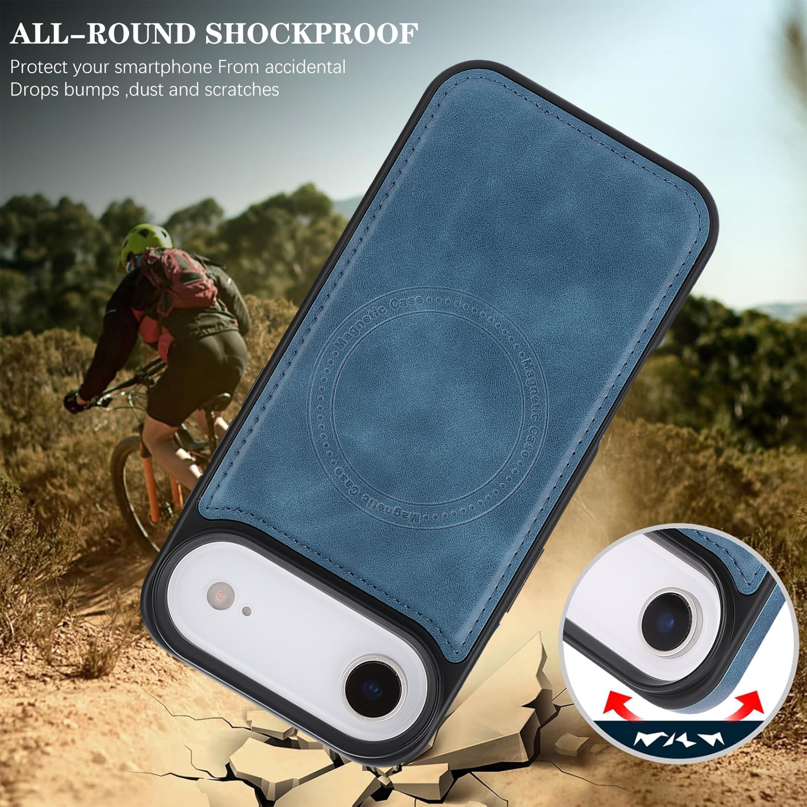 MT-TC-IP-00151BU iPhone Air Magnetic Case Blue – Vegan Leather Shockproof MagSafe Cover (1PCS)