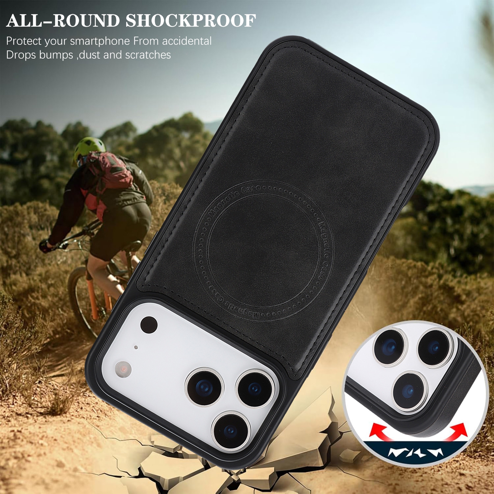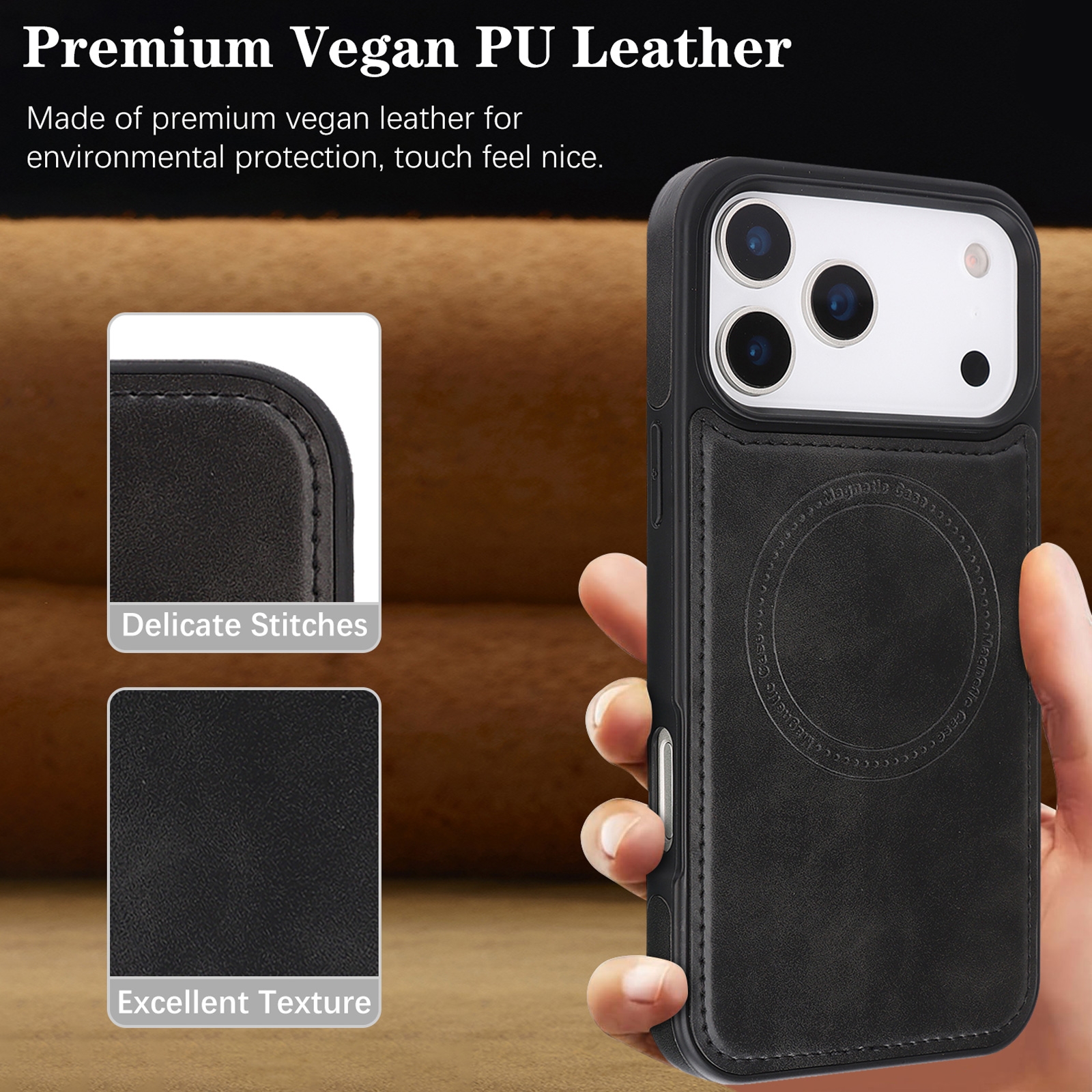 MT-TC-IP-00148BK iPhone 17 Pro Magnetic Case Black – Vegan Leather Shockproof MagSafe Cover (1PCS)