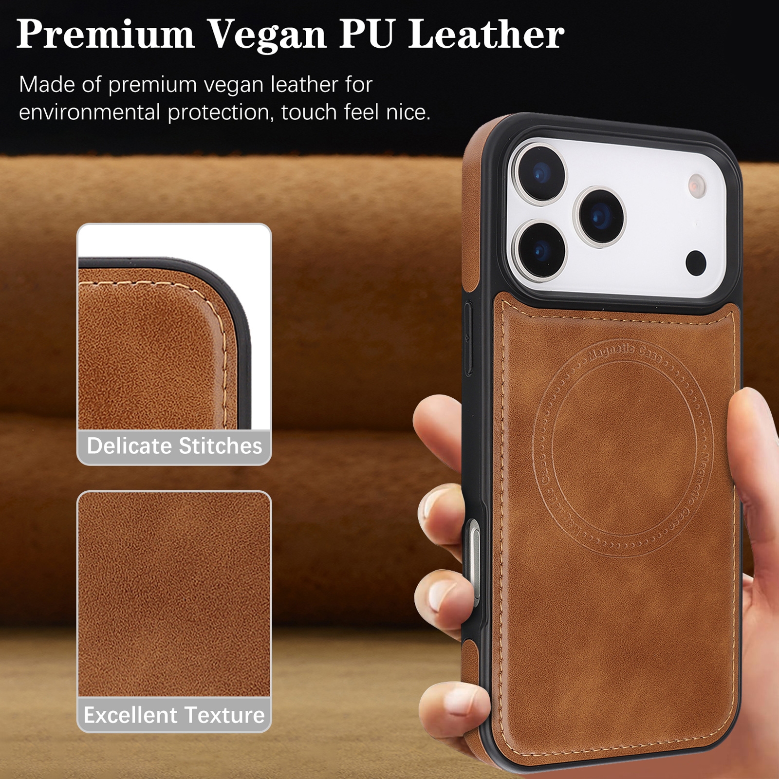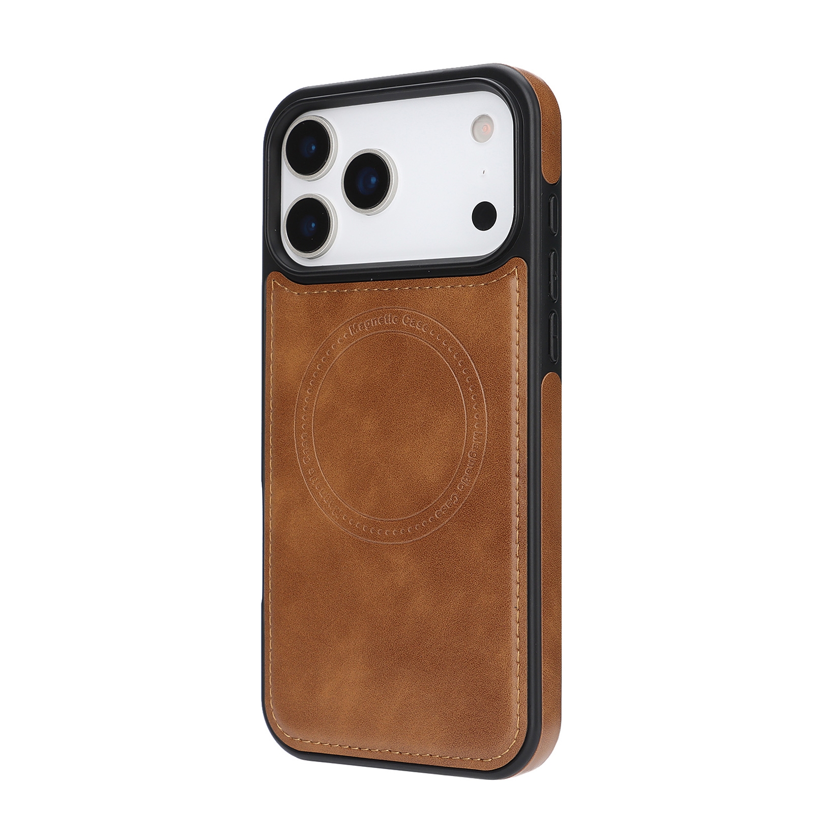 MT-TC-IP-00148BR iPhone 17 Pro Magnetic Case Brown – Vegan Leather Shockproof MagSafe Cover (1PCS)