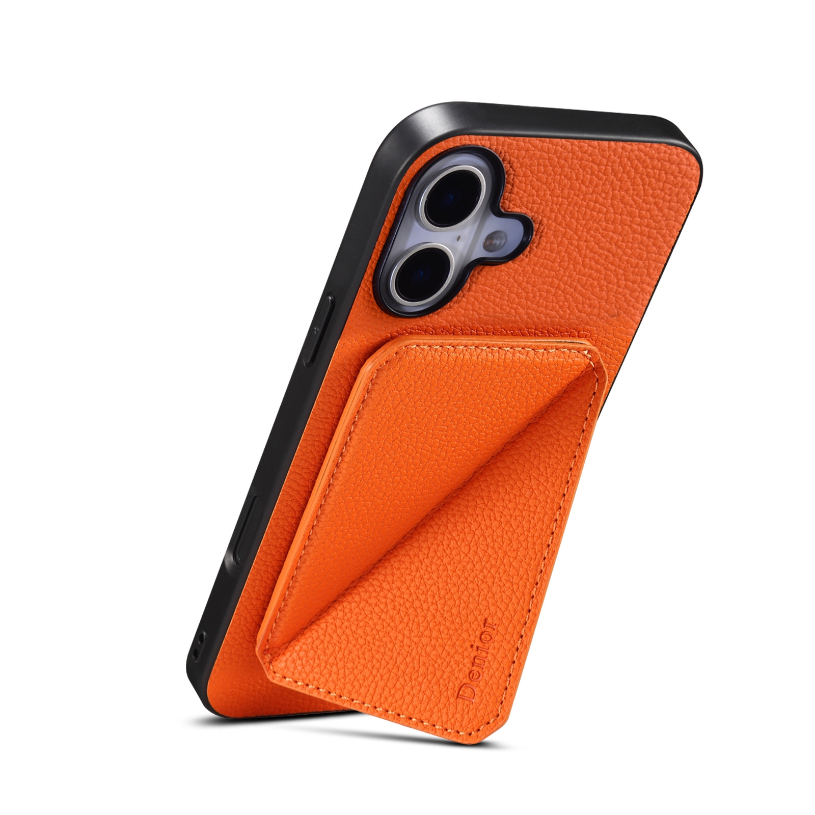• Detachable MagSafe Card Wallet: Magnetic wallet in matching orange leather holds essential cards safely.