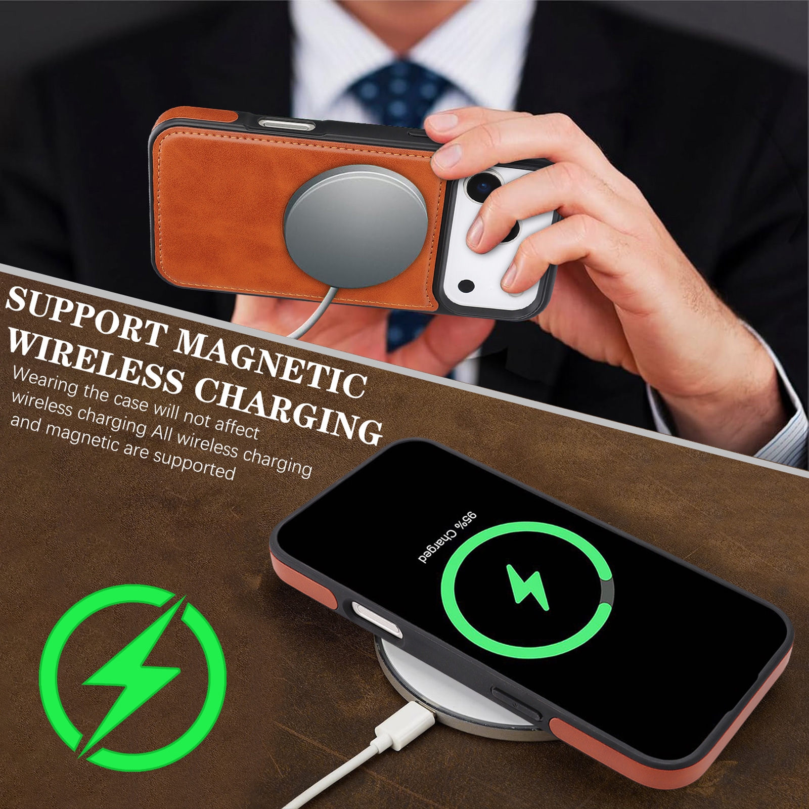 • Seamless Magnetic Wireless Charging: Built-in magnetic ring supports wireless charging without removing the case.