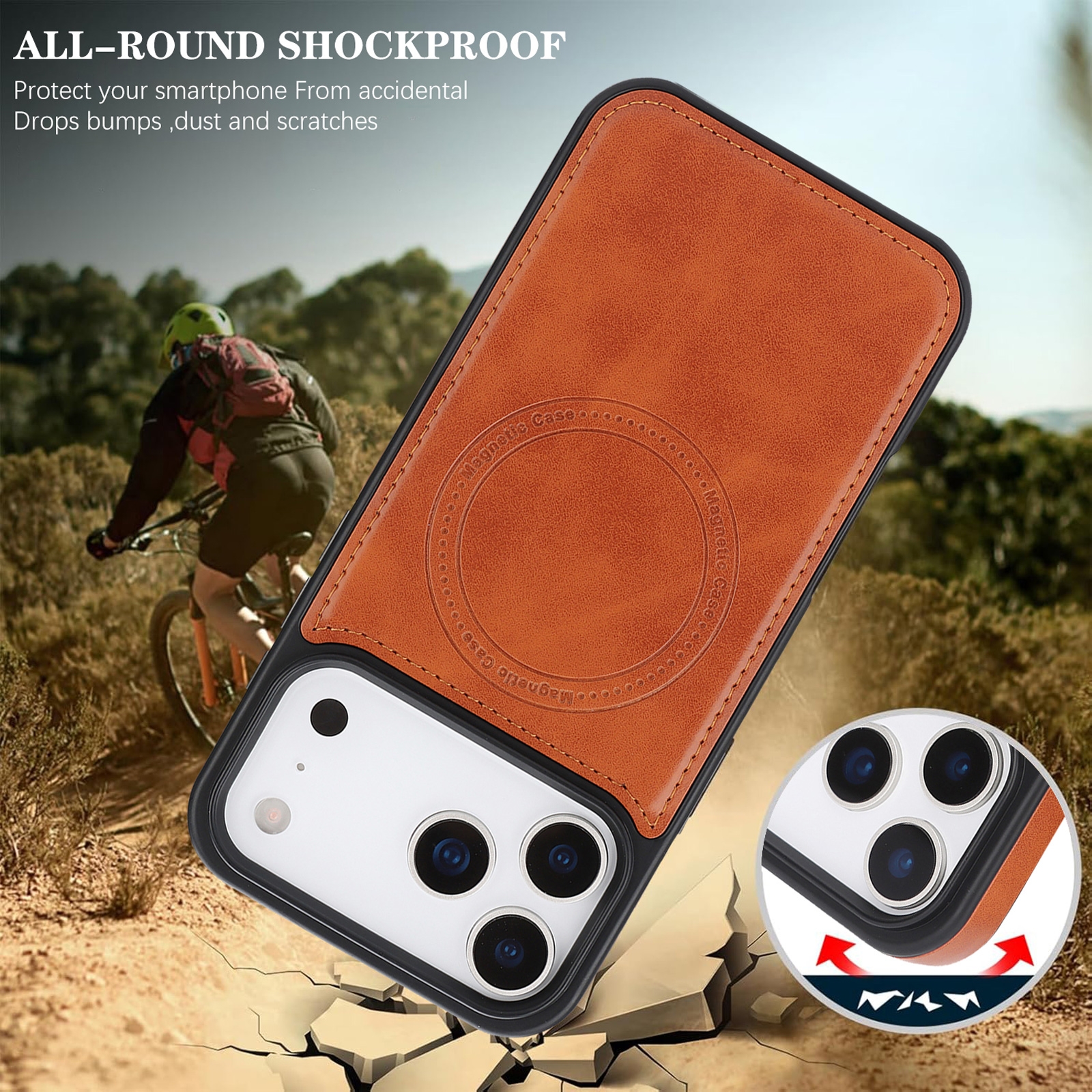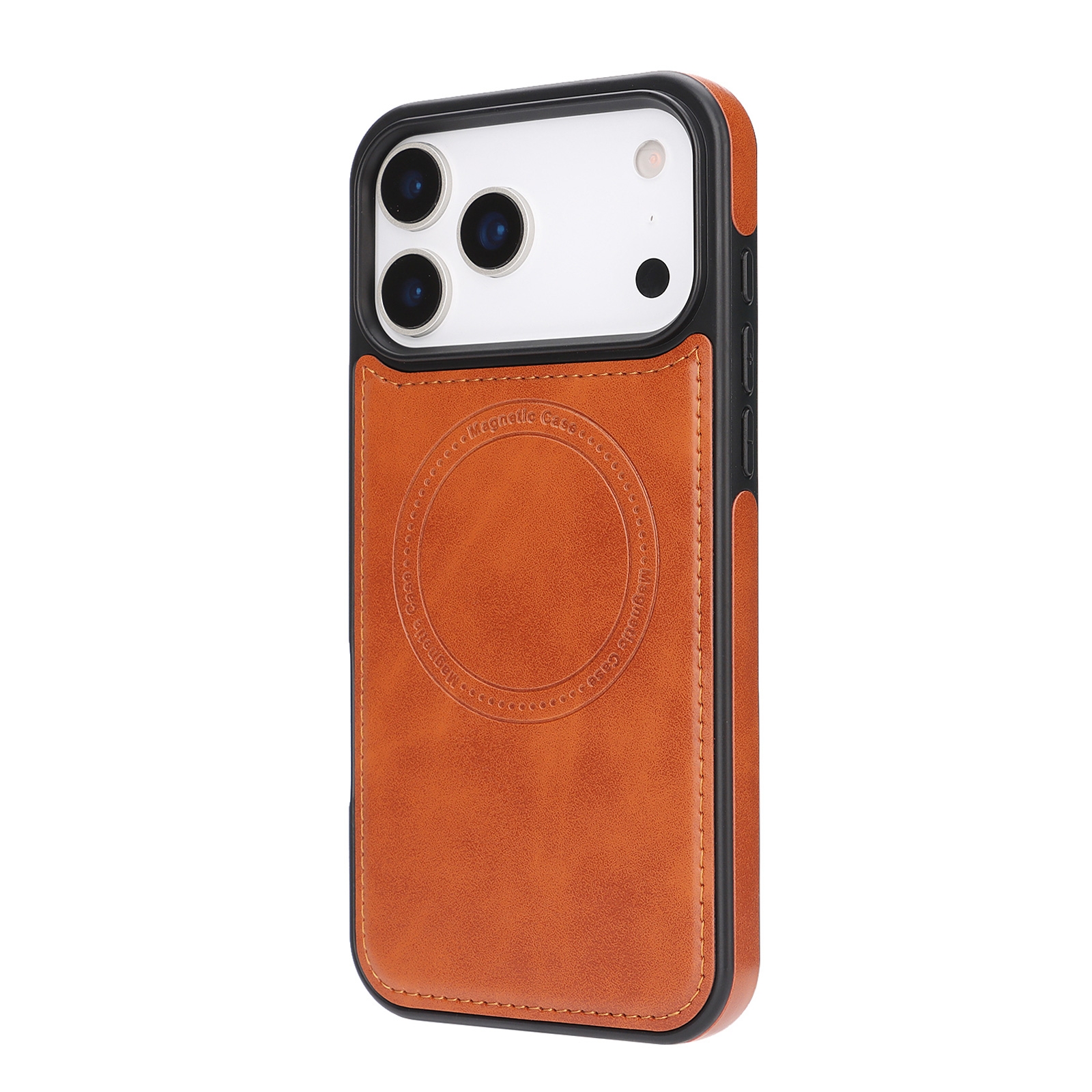 MT-TC-IP-00149LBR iPhone 17 Pro Max Magnetic Case Light Brown – Vegan Leather Shockproof MagSafe Cover (1PCS)