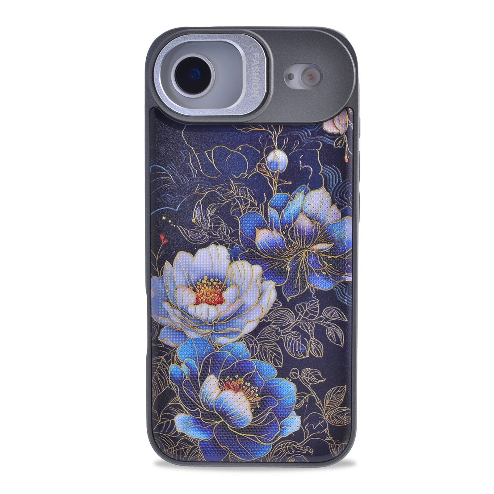 • Detachable Gilded Floral Back Cover - Customizable design with blue background and gilded floral pattern.