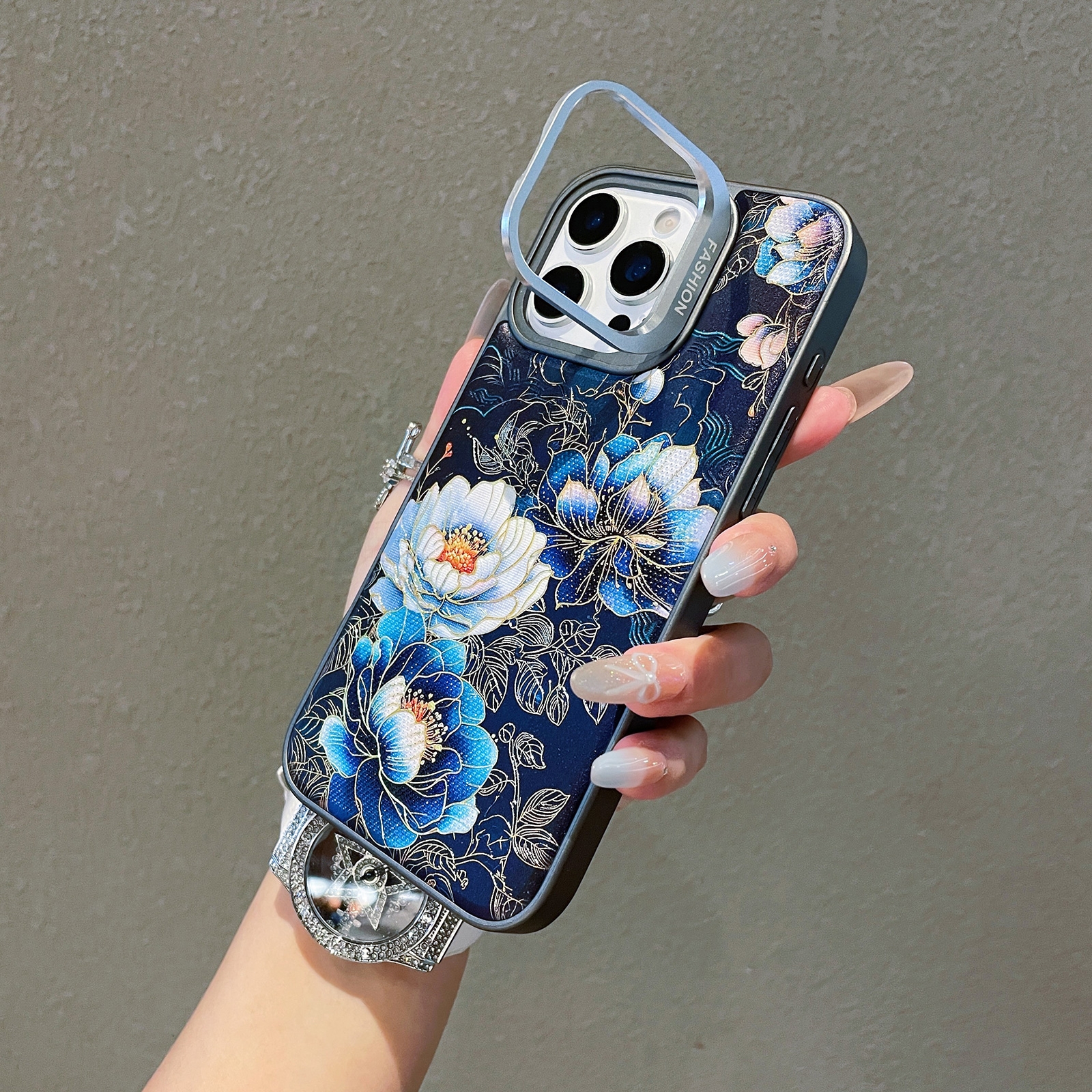 iPhone Air Blue Gilded Floral Magnetic Case - Detachable Gilded Floral Back Cover