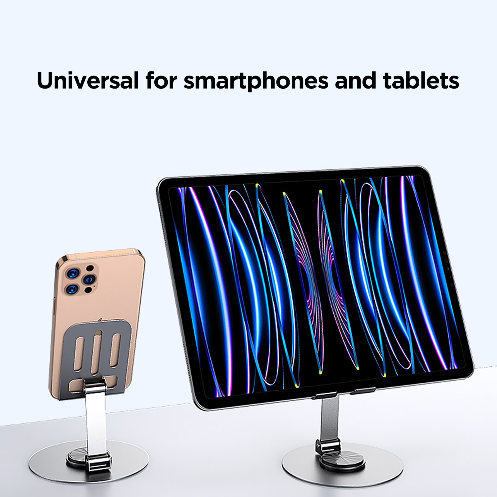 Adjustable Aluminum Foldable Stand with 360-Degree Rotation - Gray