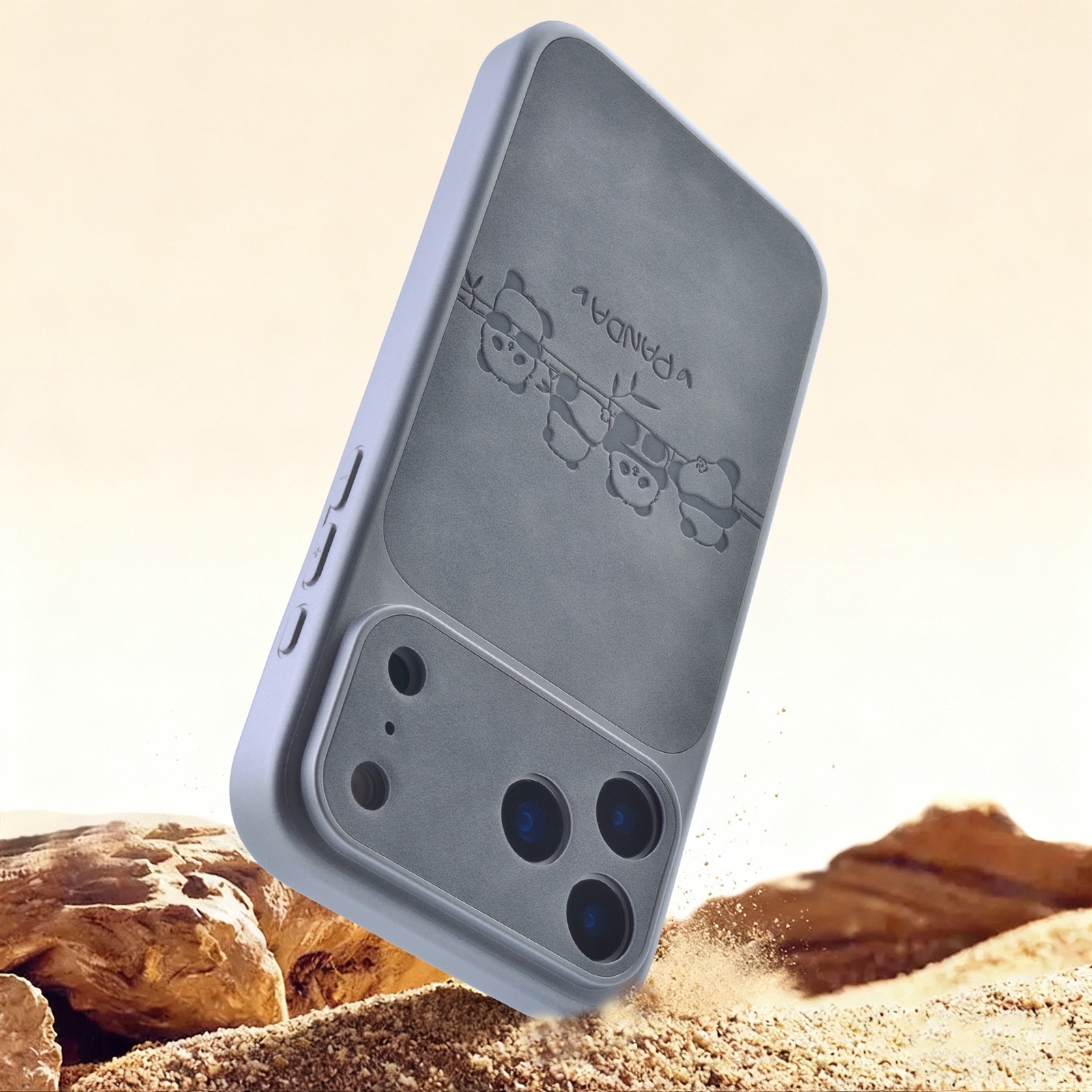 CS-UN-0061-2854GY Cute Panda Leather Pattern Back iPhone 17 Pro Case - TPU Shockproof Phone Cover - Gray (1PCS)
