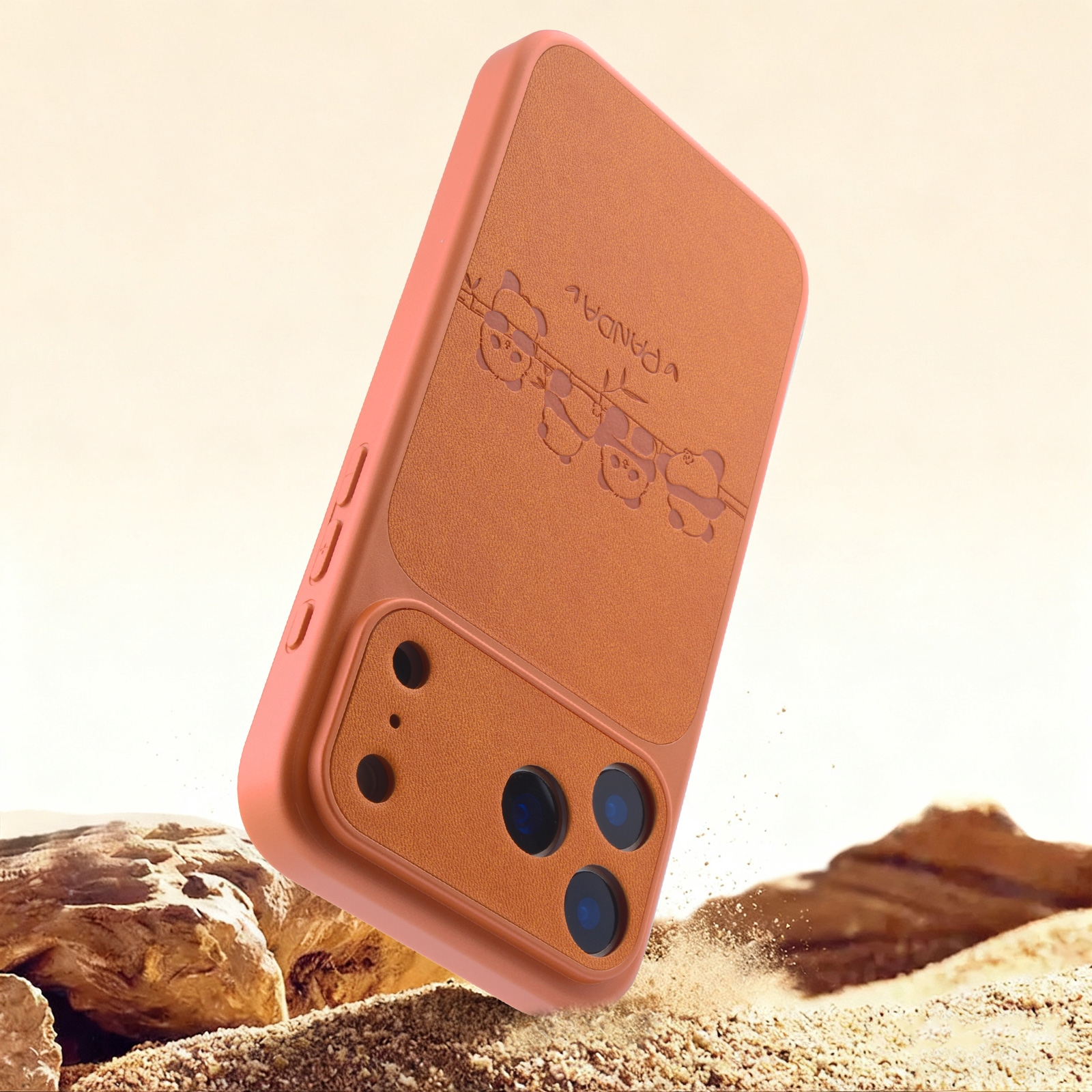 CS-UN-0061-2854OR Cute Panda Leather Pattern Back iPhone 17 Pro Case - TPU Shockproof Phone Cover - Orange (1PCS)