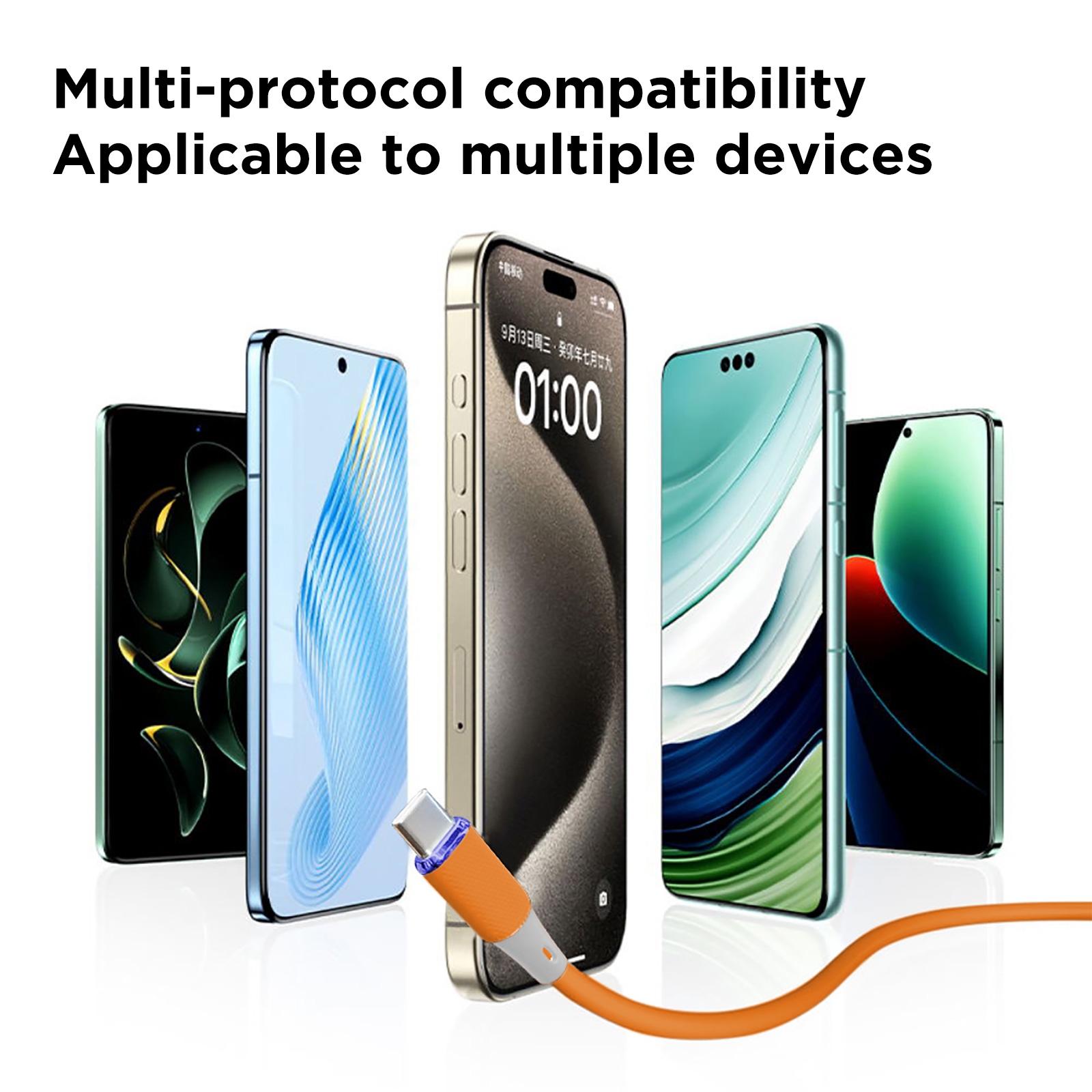 DA-UN-0059-2489OR Silicone C-C 1M Fast Charging Cable - Antioxidant Data Tranamit - Orange (1PCS)