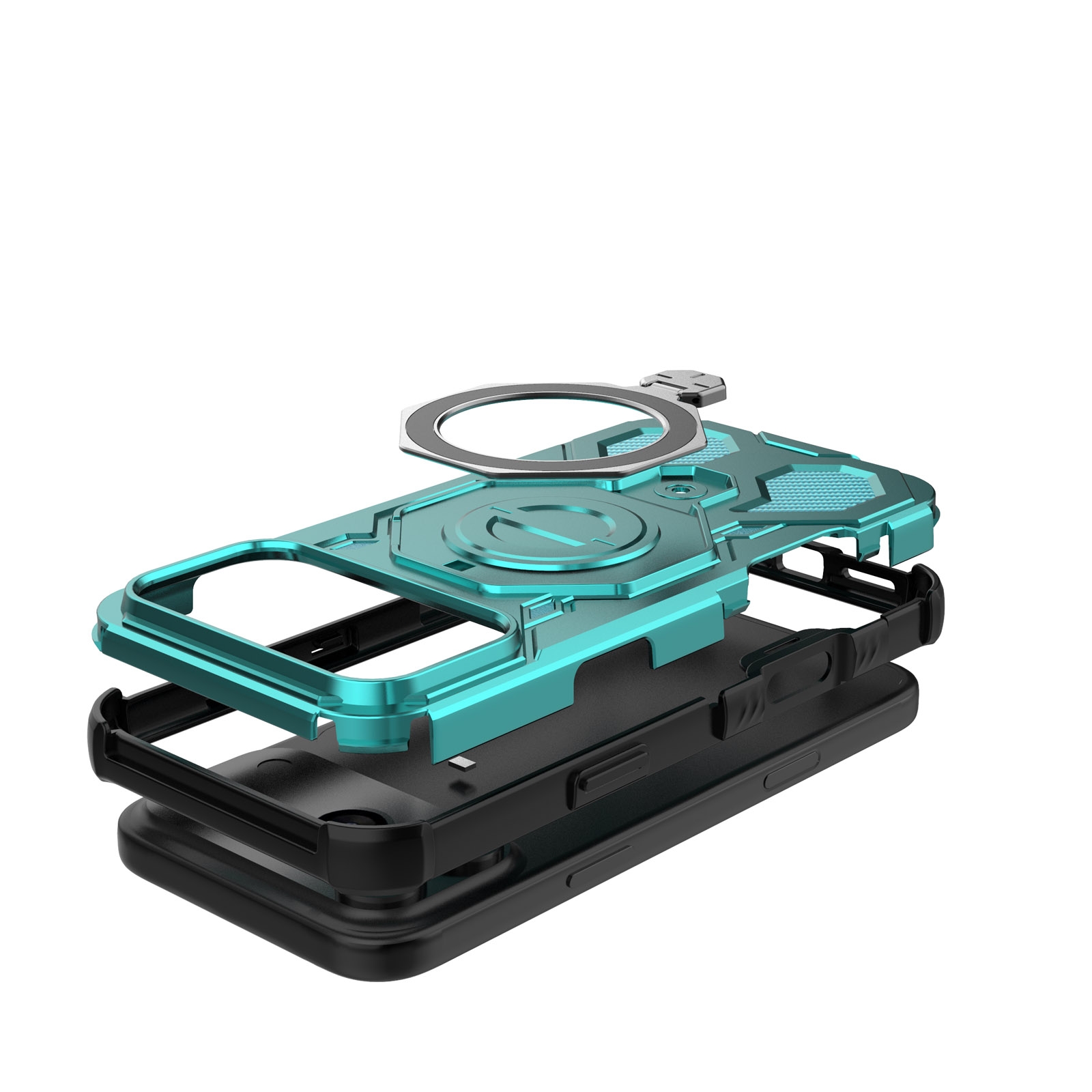 360 Rotation Kickstand Magnetic iPhone 17 Pro Case - Airbag Shockproof Metal Stand, Light Blue