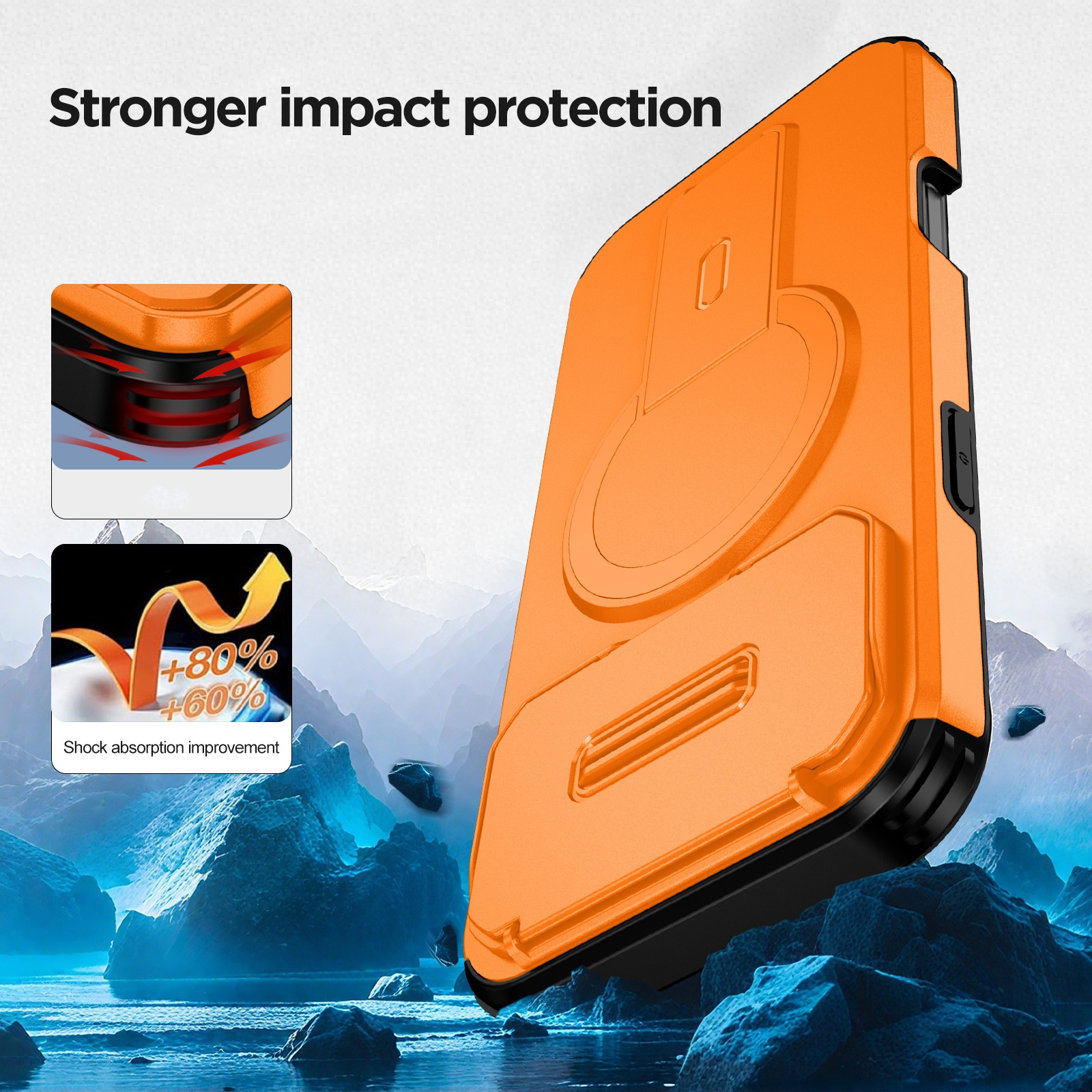 iPhone 17 Pro Max Hidden Kickstand Armor Design Protective Case, Orange