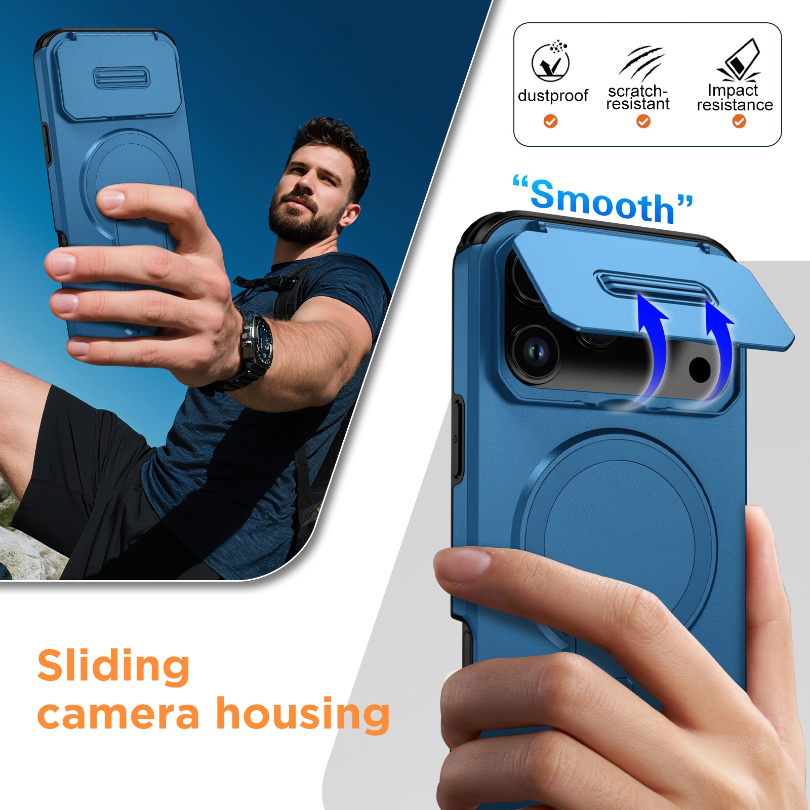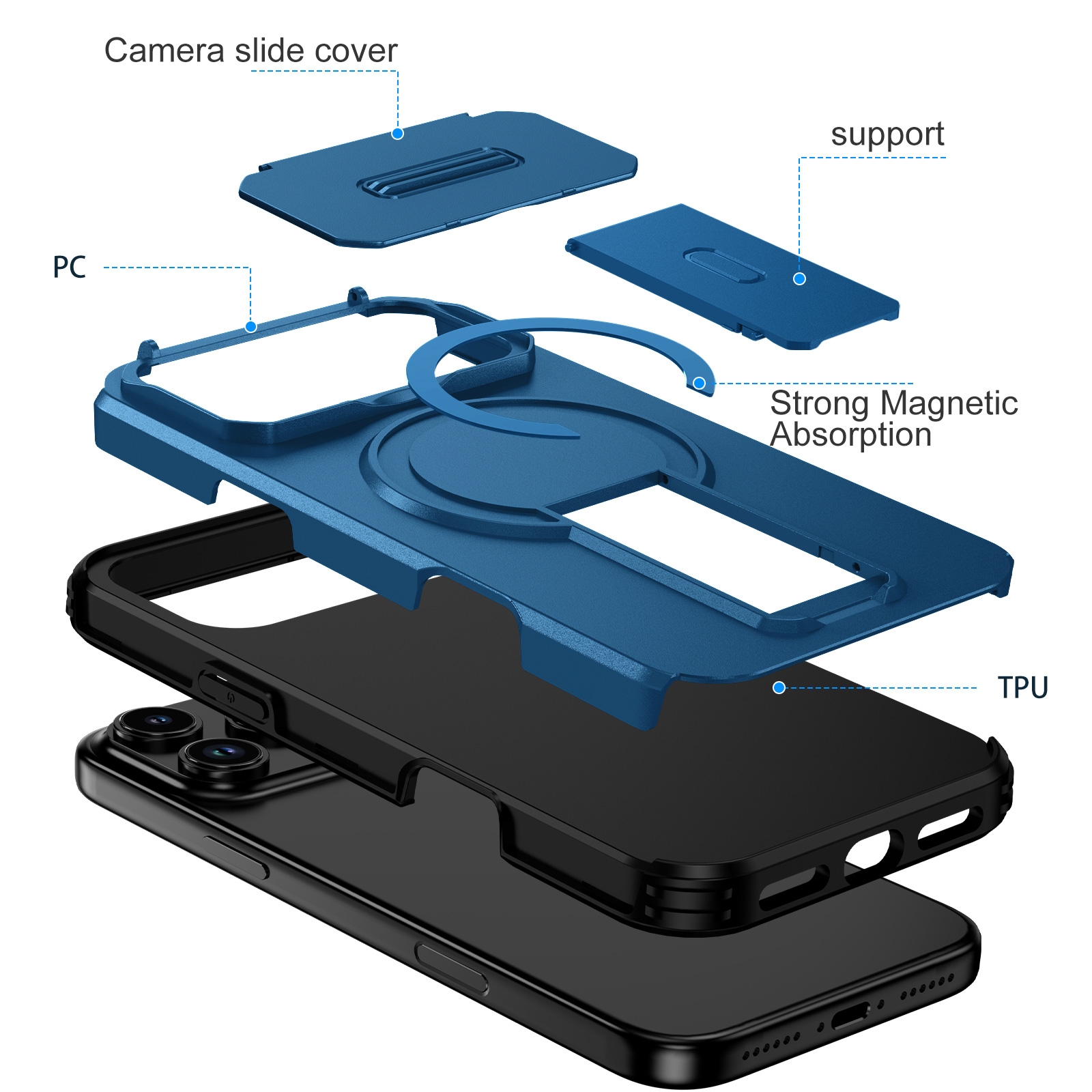 iPhone 17 Pro Max Hidden Kickstand Armor Design Protective Case, Dark Blue