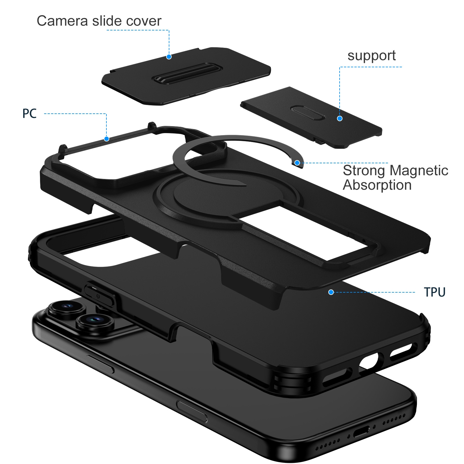 CS-UN-0044-2855BK iPhone 17 Pro Max Hidden Kickstand Armor Design Protective Case - Black (1PCS)