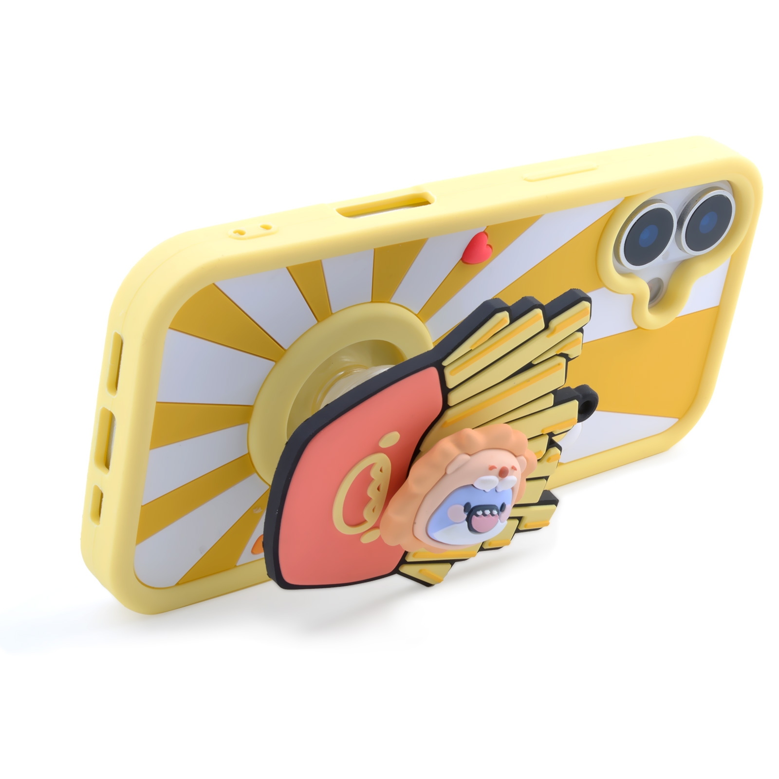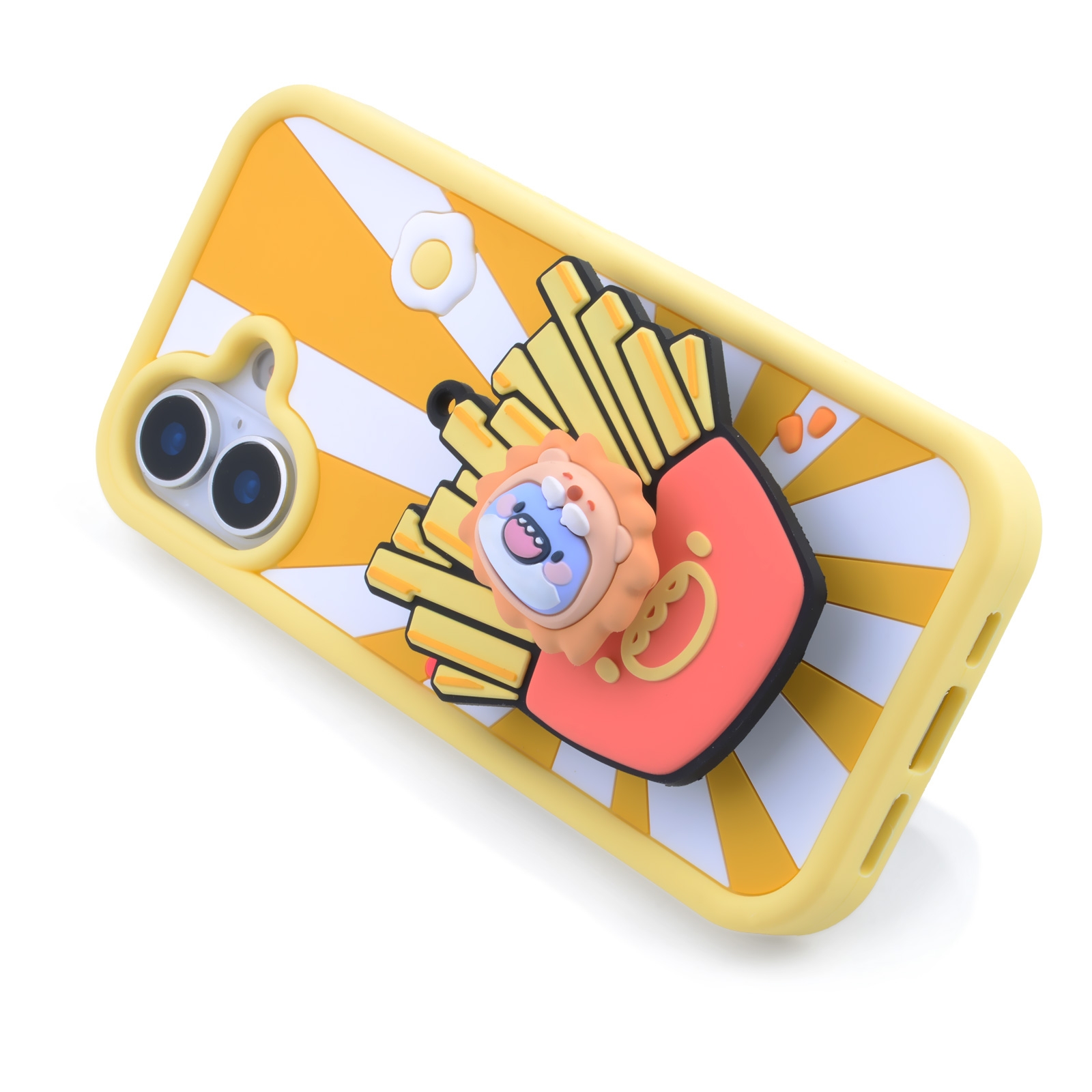 3D Fat Shark with French Fries for iPhone 17 - Soft Silicone cover with Rotatable Kickstand - Yellow
