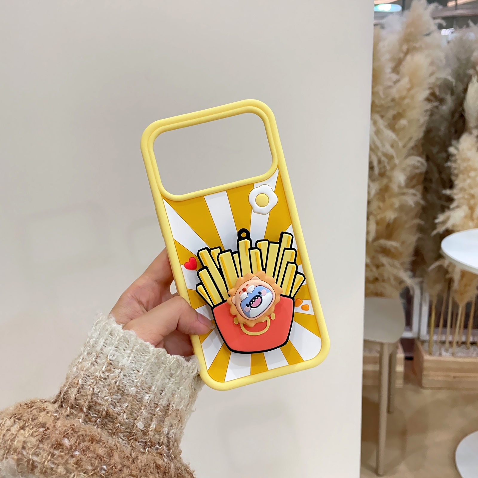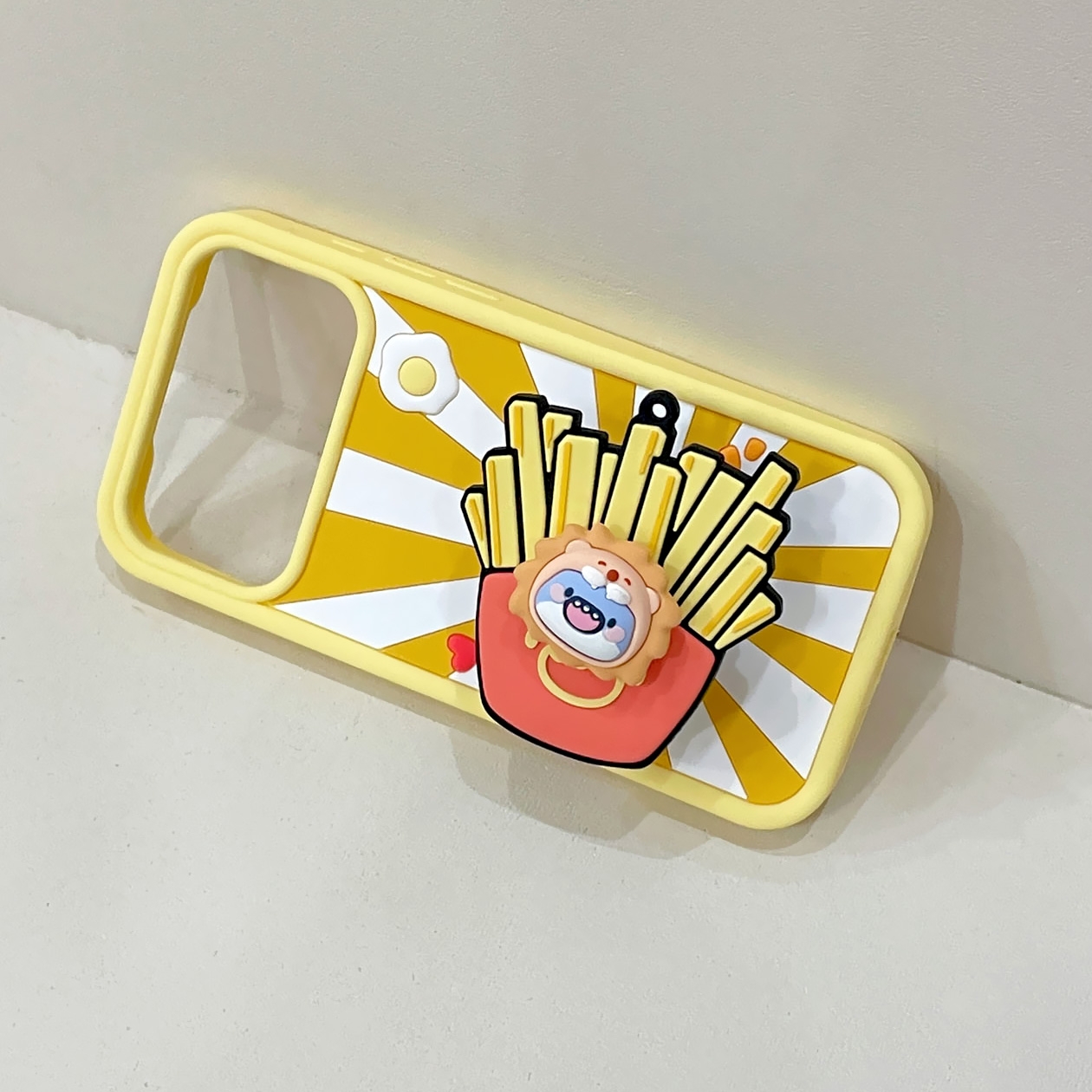 3D Fat Shark with French Fries for iPhone 17 Pro - Soft Silicone cover with Rotatable Kickstand - Yellow