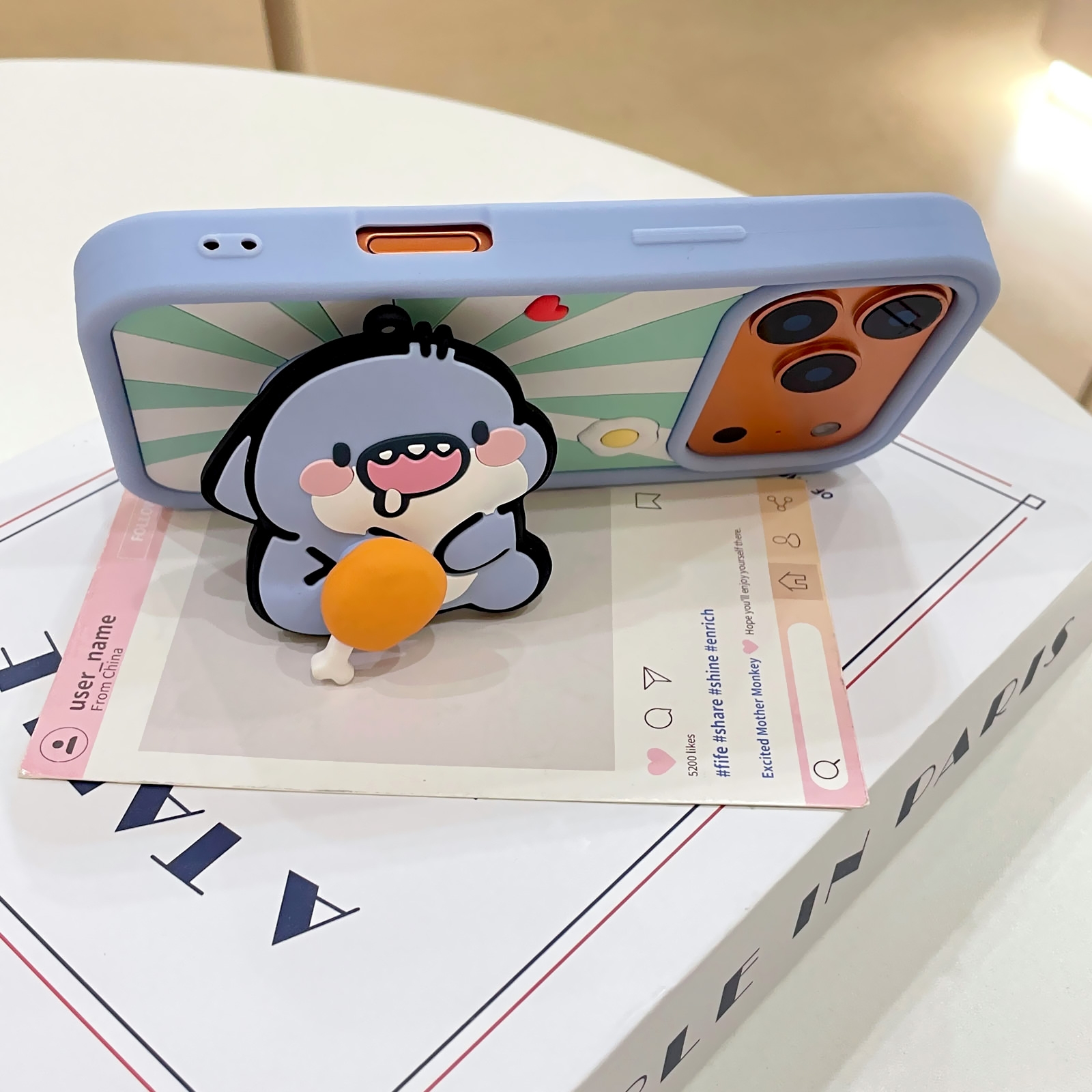 CS-UN-0101-2854LB 3D Fat Shark with Chicken Drumstick for iPhone 17 Pro - Soft Silicone cover with Rotatable Kickstand - Light Blue (1PCS)