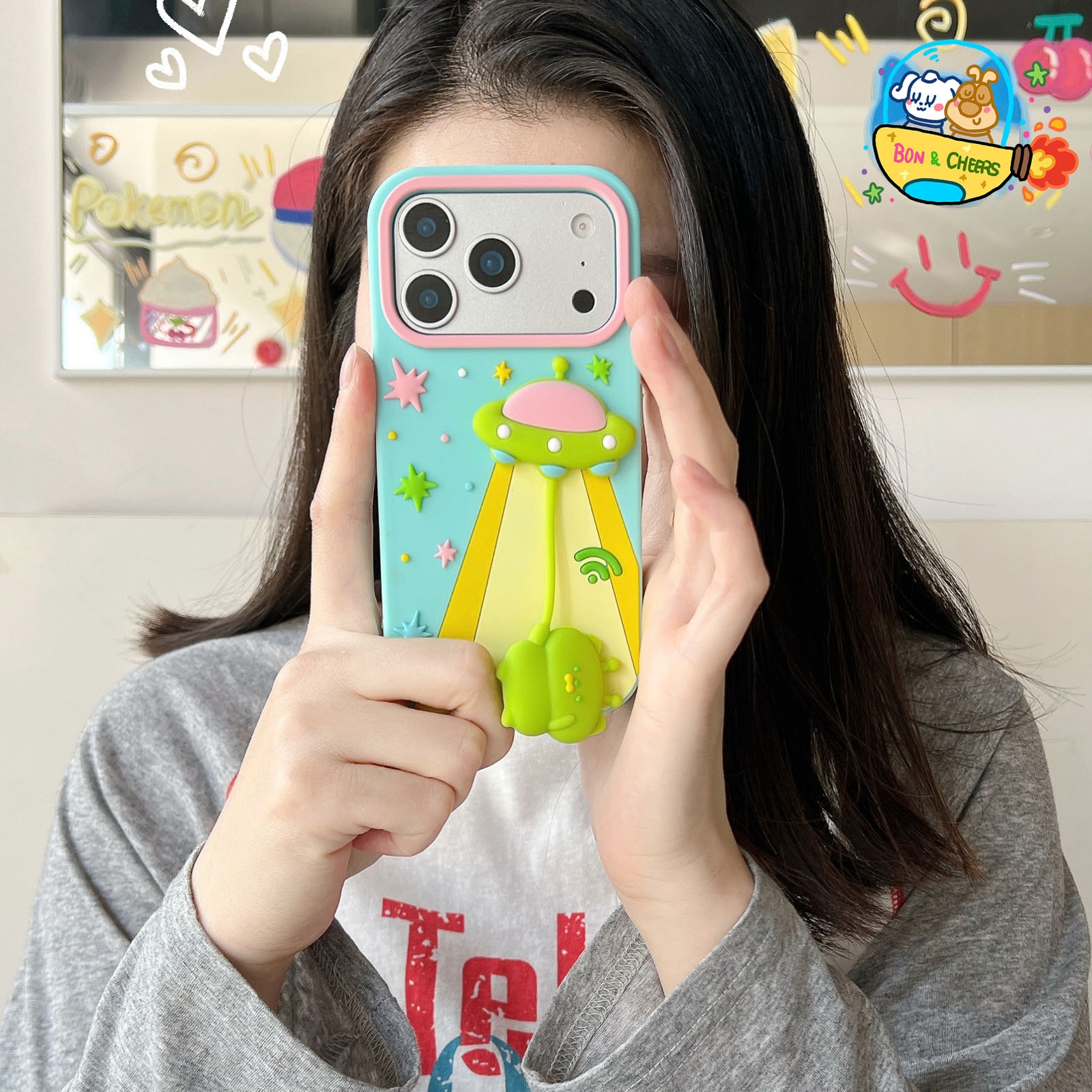 CS-UN-0100-2854LB Cute 3D Alien UFO Space Silicone Case for iPhone 17 Pro - Blue (1PCS)