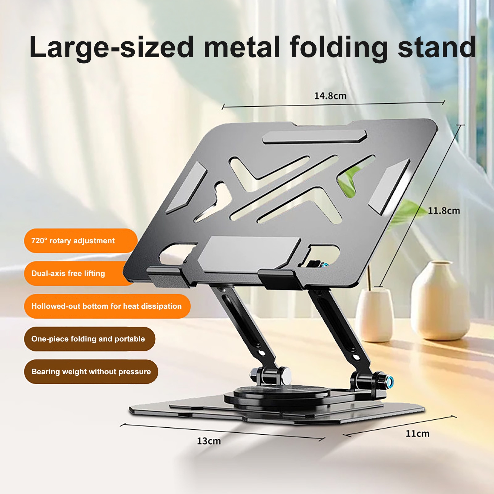 LS-UN-0124-2862BK Metal Laptop Stand - 360° Rotating Cooling Foldable Riser, Black (1PCS)