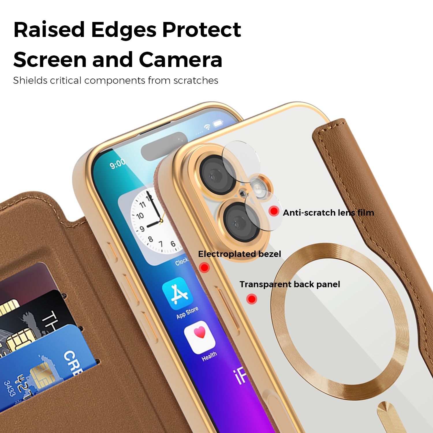 iPhone 17 Carbon Fiber Case – MagSafe Compatible Slim Leather Cover – Gold