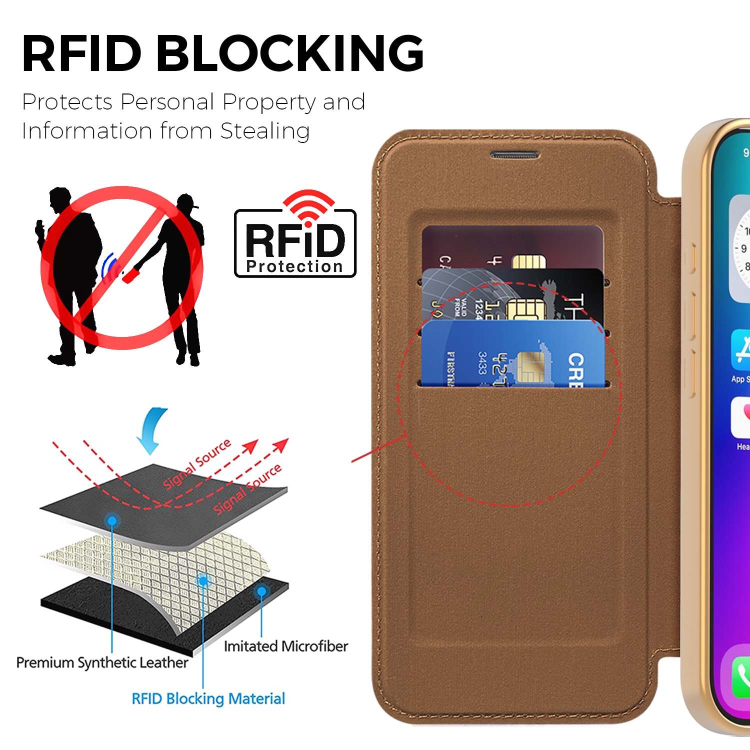 CS-UN-0117-2852BR Premium Business PU Folio Case for iPhone 17 - Brown (1PCS)