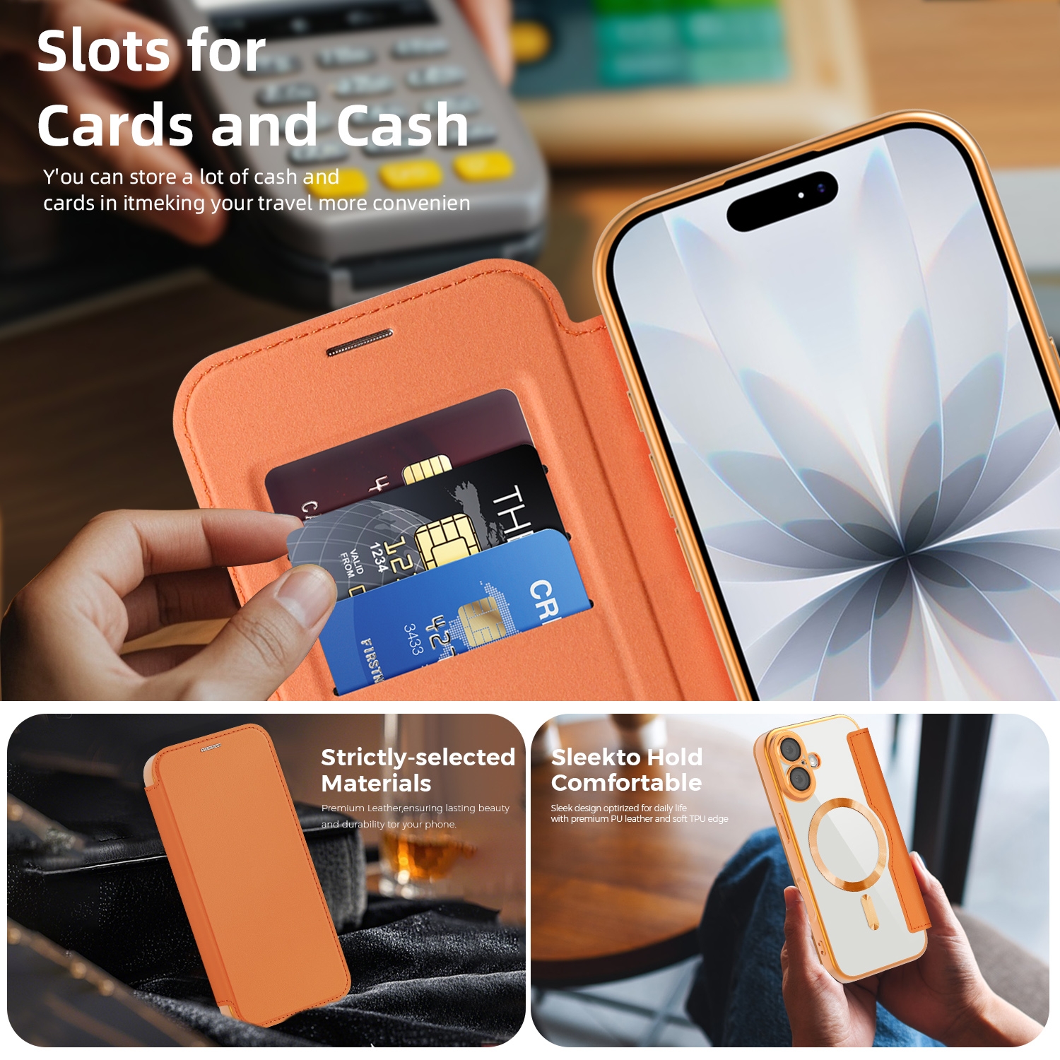 CS-UN-0117-2852OR Premium Business PU Folio Case for iPhone 17 - Orange (1PCS)