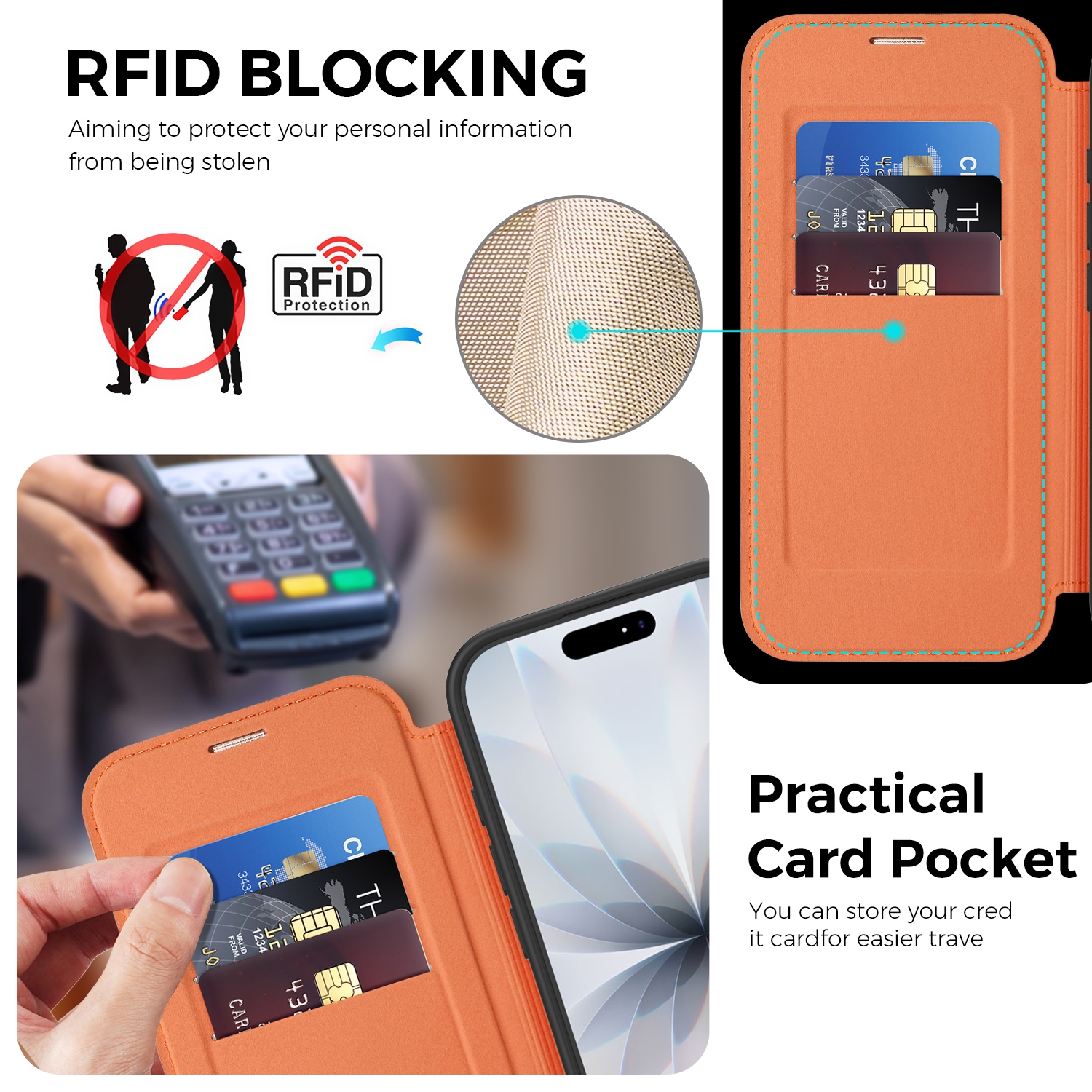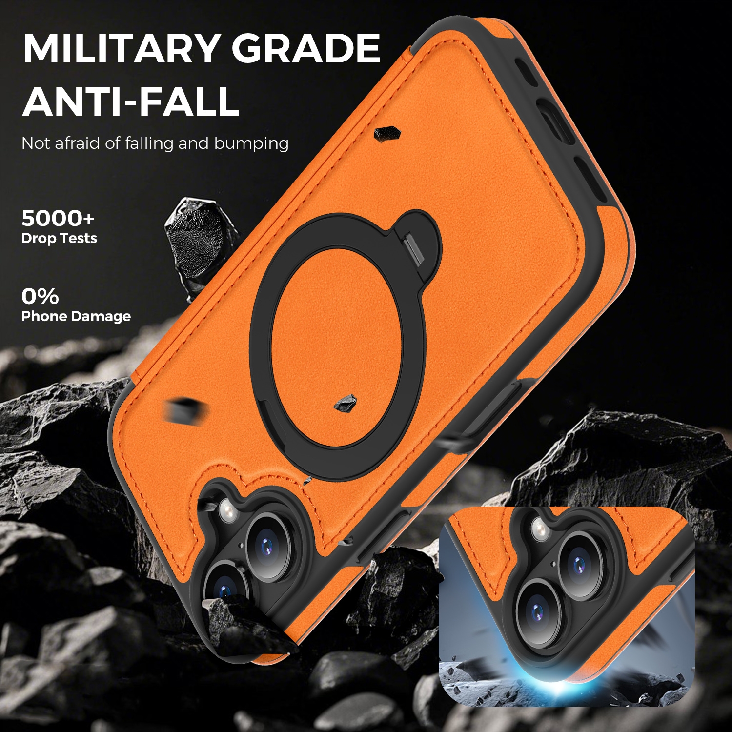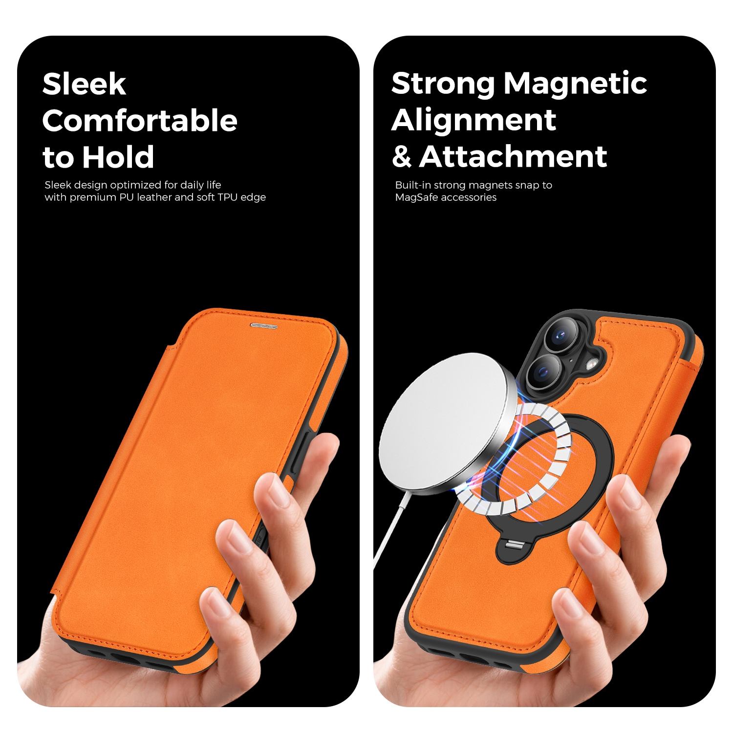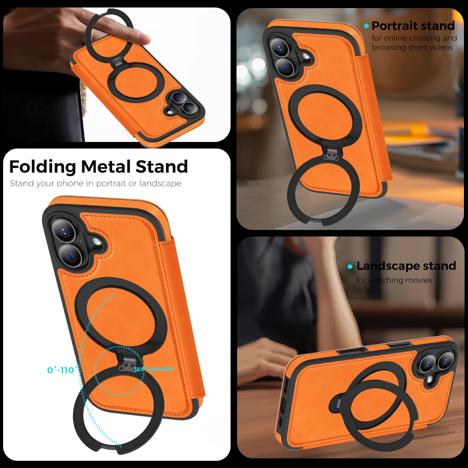 CS-UN-0115-2852OR 360° Rotating Stand iPhone 17 Case - Magnetic Wireless Charging PU Cover - Orange (1PCS)