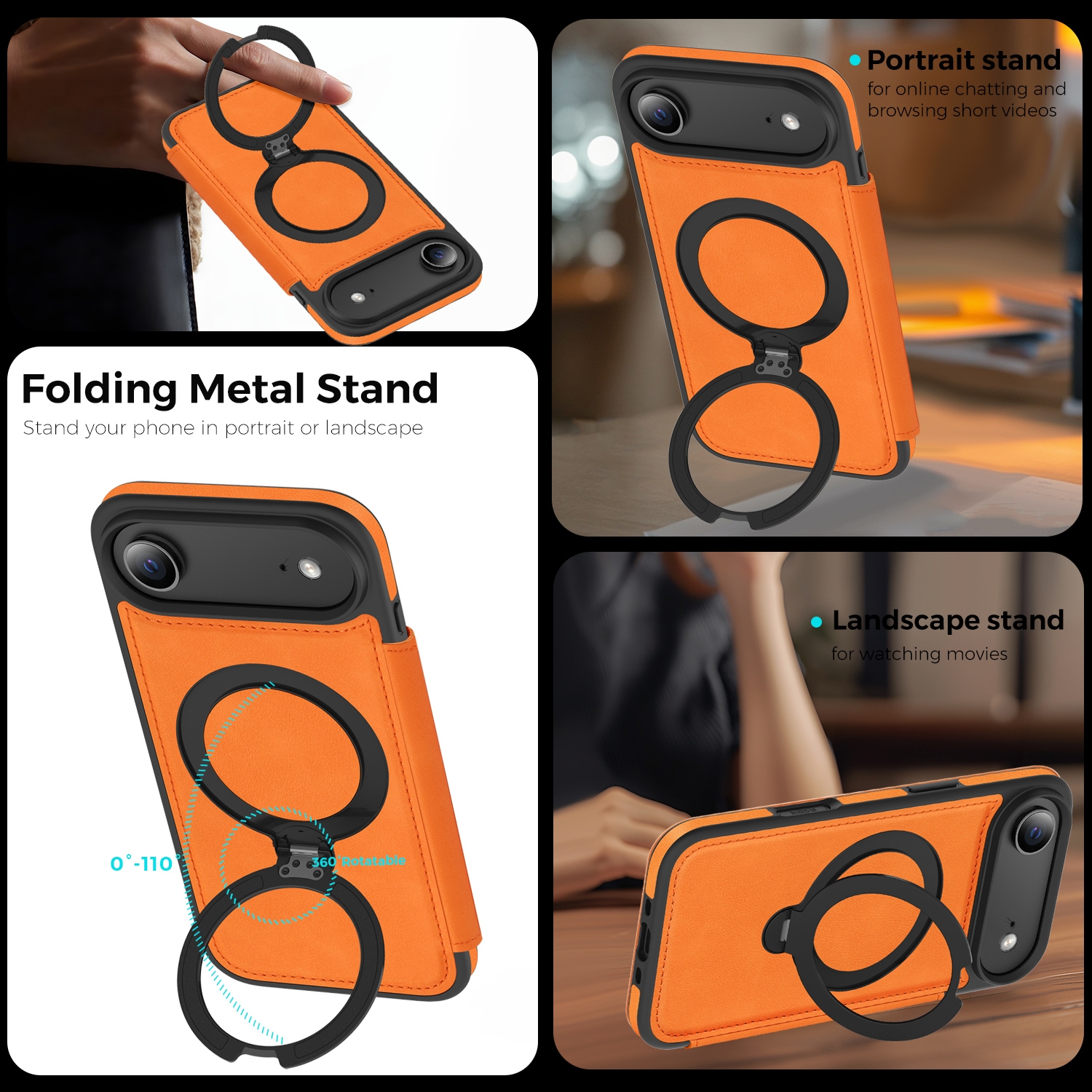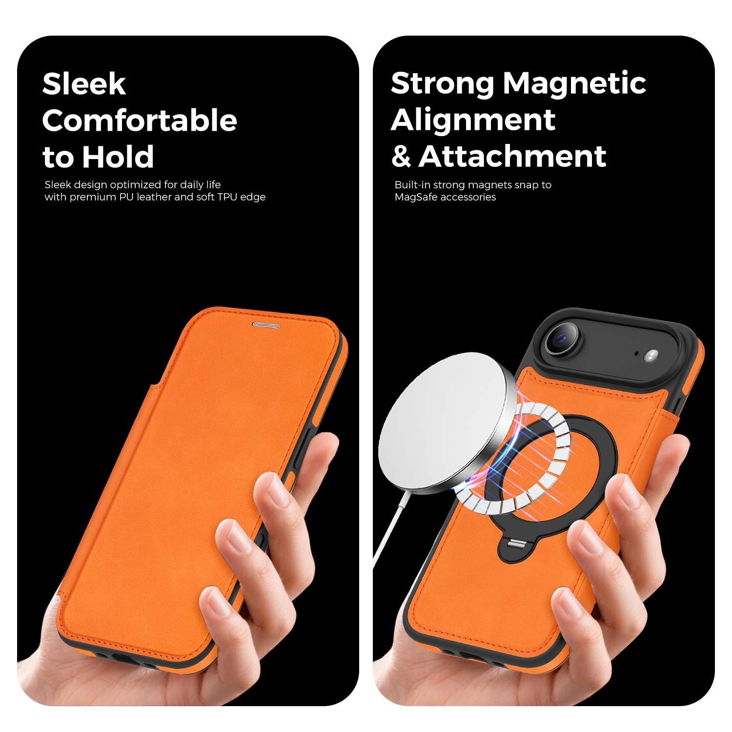 CS-UN-0115-2853OR 360° Rotating Stand iPhone Air Case - Magnetic Wireless Charging PU Cover - Orange (1PCS)