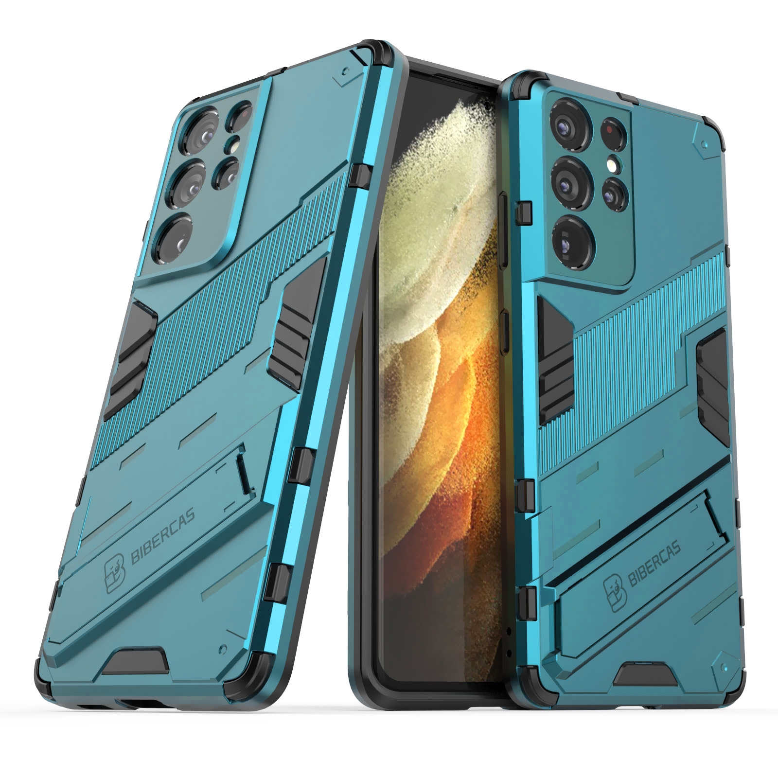 CS-UN-0155-2918BU Armor Texture Phone Case with Foldable Hidden Stand for S26 Ultra - Blue (1PCS)