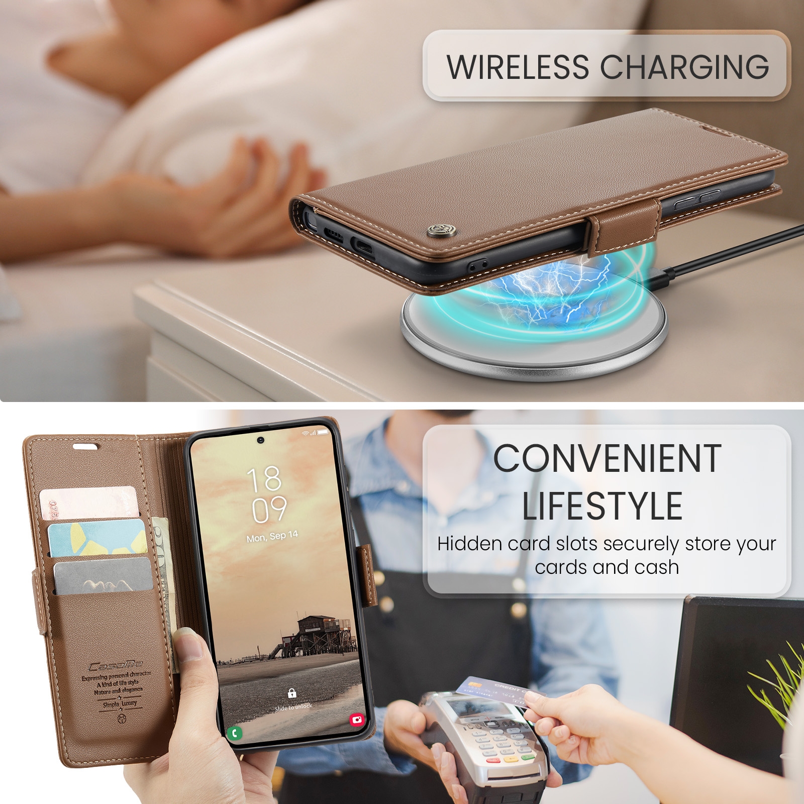 CS-CME-0161-2918BR Flip Phone Case for S26 Ultra with Butterfly Buckle - RFID Blocking Anti - Brown (1PCS)