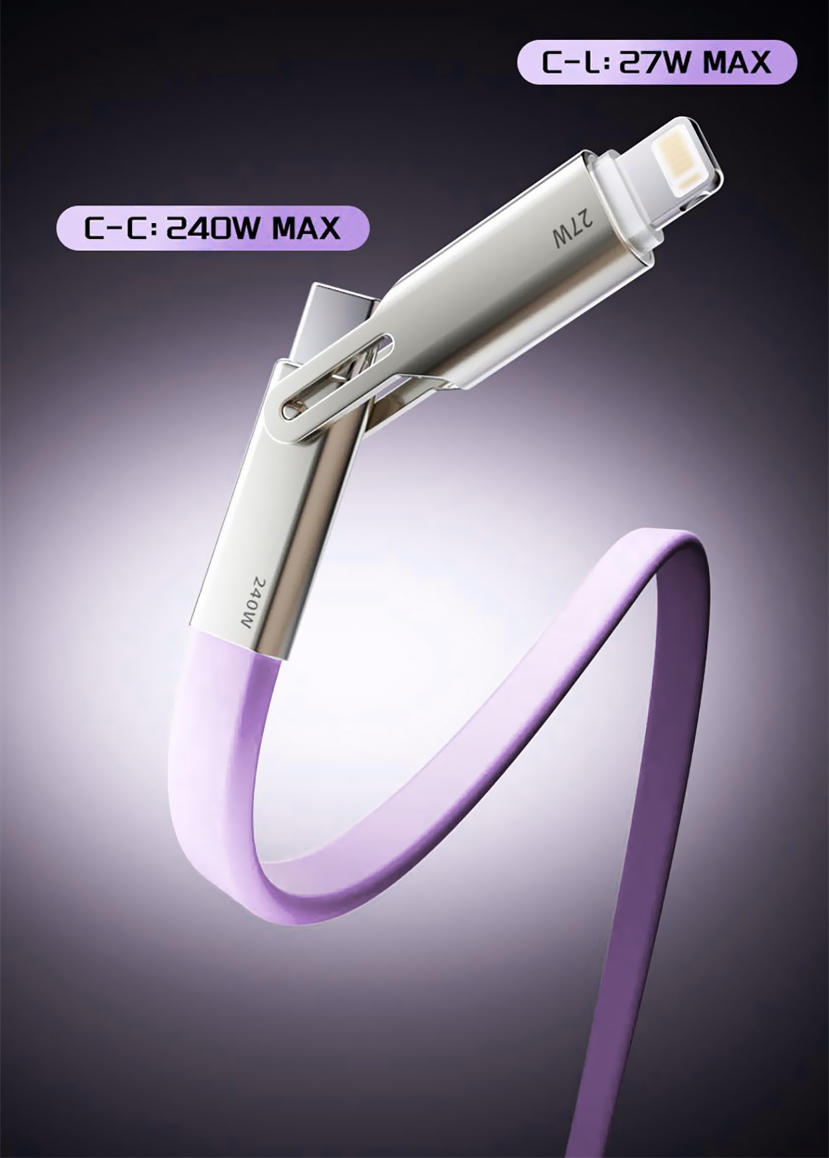 240W 2-in-1 Fast Charging Cable Features with Zinc Alloy Connectors