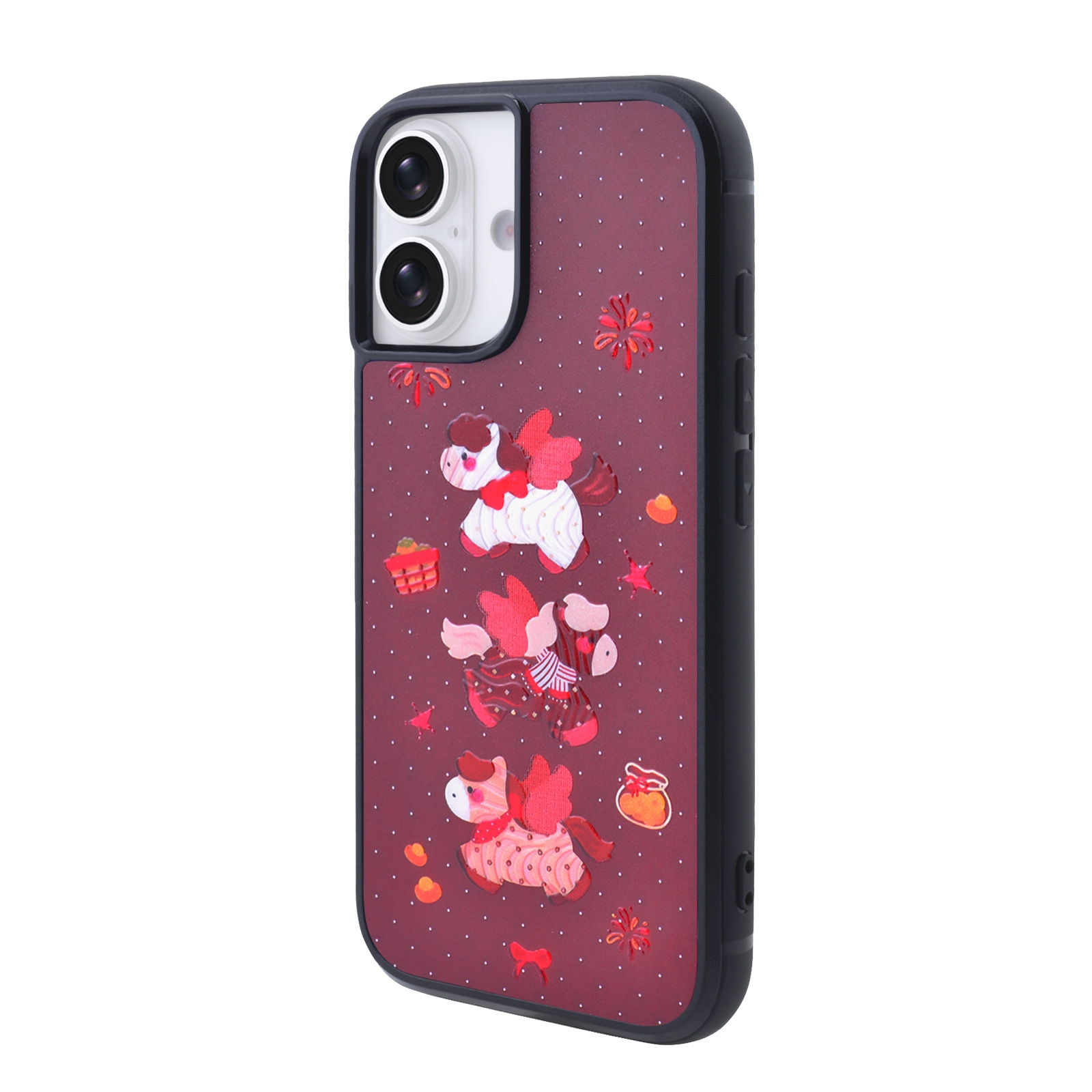 CS-UN-0187-2852BK Magnetic Cute Pony Phone Case for iPhone 17 - Maroon Background with Glitter Accents (1PCS)