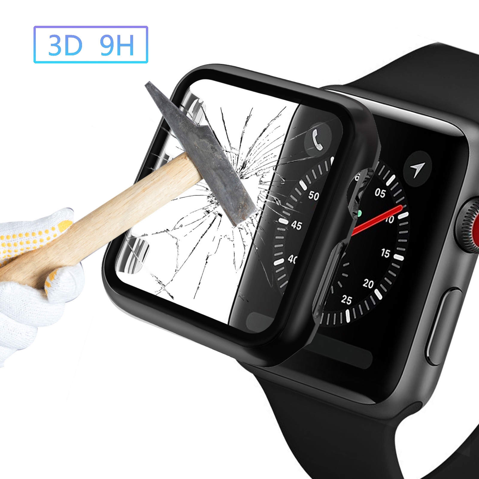 Black Bumper Case with Built-in Screen Protector for Apple Watch 2/3 38mm