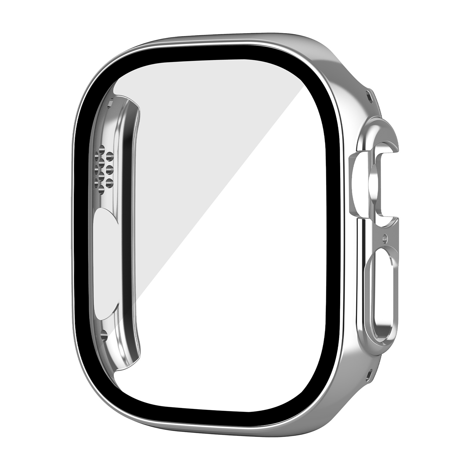 CS-UN-0201-2936SL Scratch-Resistant Electroplated PC Case with Tempered Glass for iWatch Ultra 1/2/3 (49mm) - Silver (1PCS)