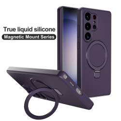 Silicone Magnetic Phone Case for S26 Ultra with Foldable Ring Stand - Dark Purple