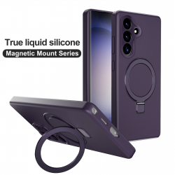 Silicone Magnetic Phone Case for S26 Plus with Foldable Ring Stand - Dark Purple