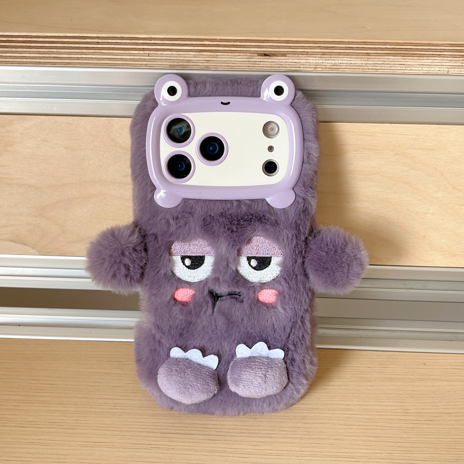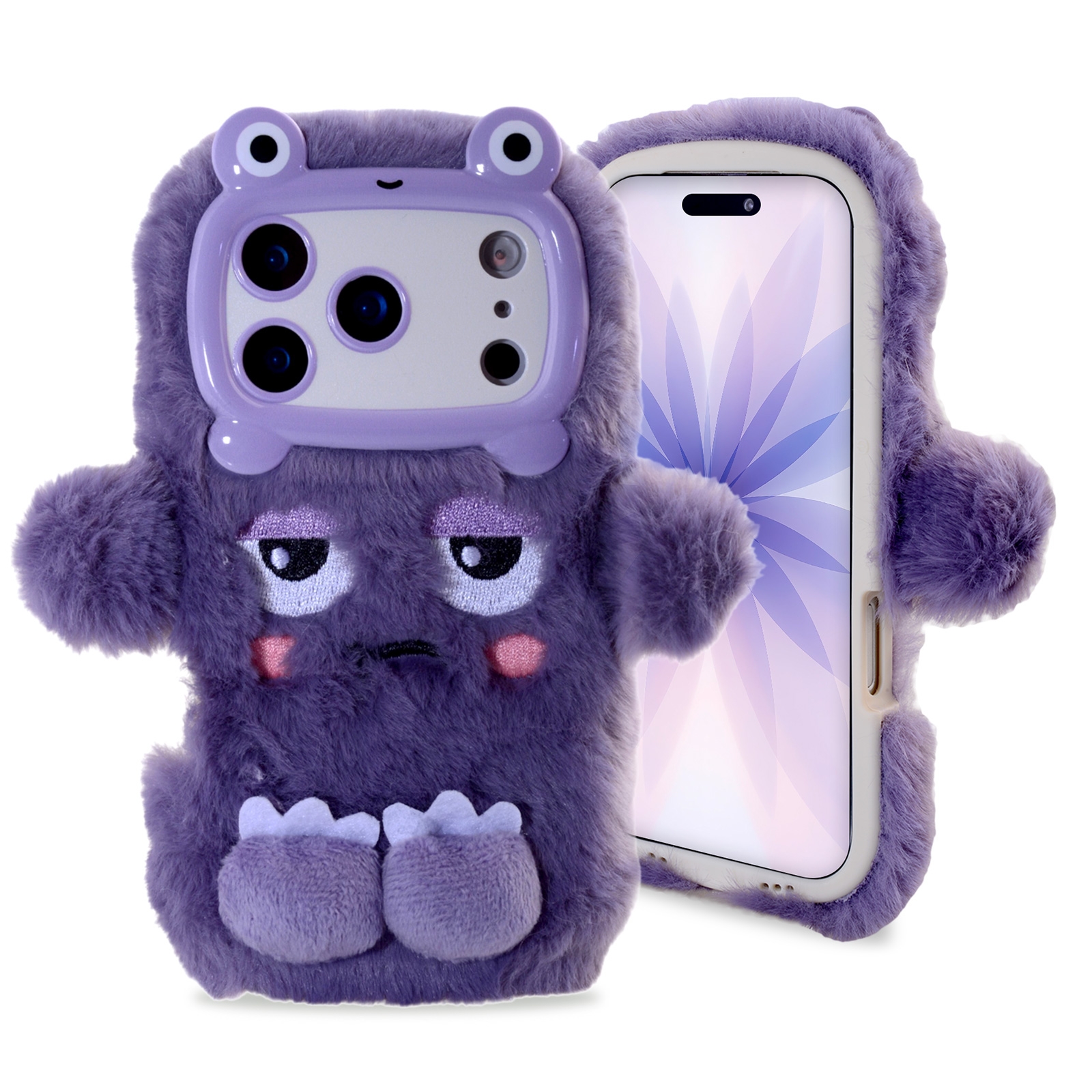 iPhone 17 Pro Max Plush Phone Case – Purple Monster Design