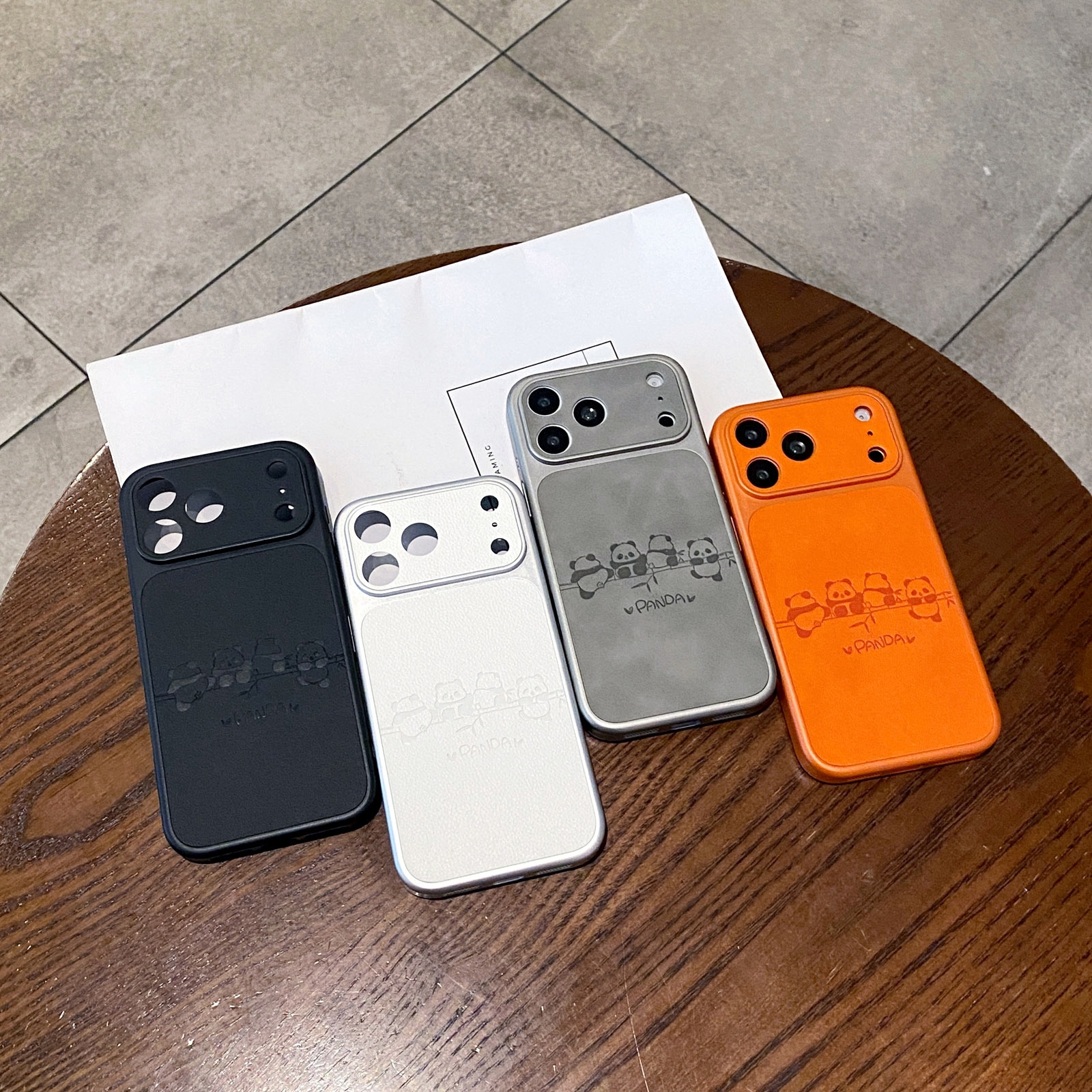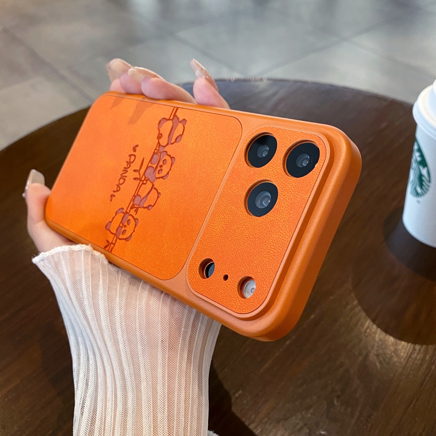 Cute Panda Leather Pattern Back iPhone 17 Pro Max Case - TPU Shockproof Phone Cover, Orange