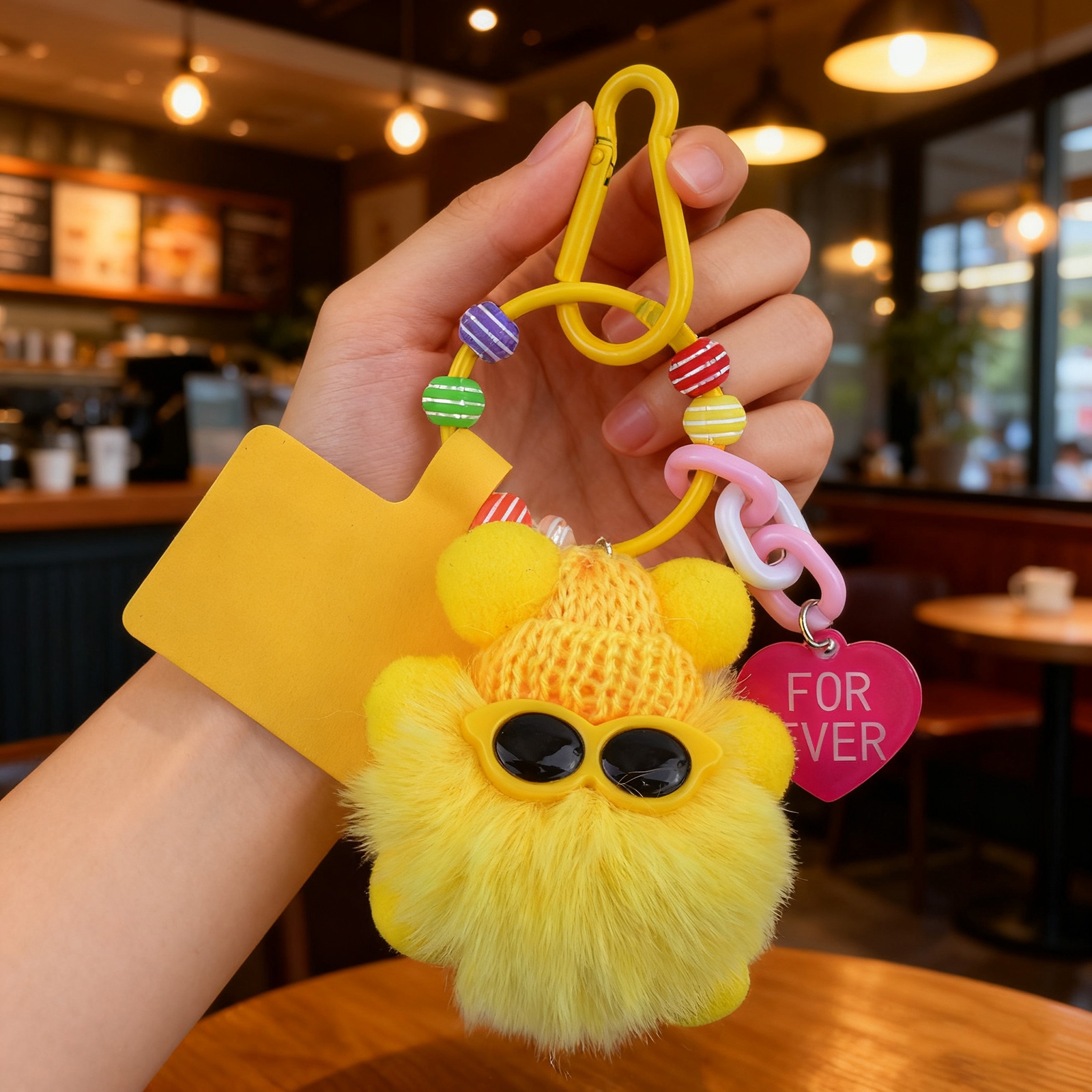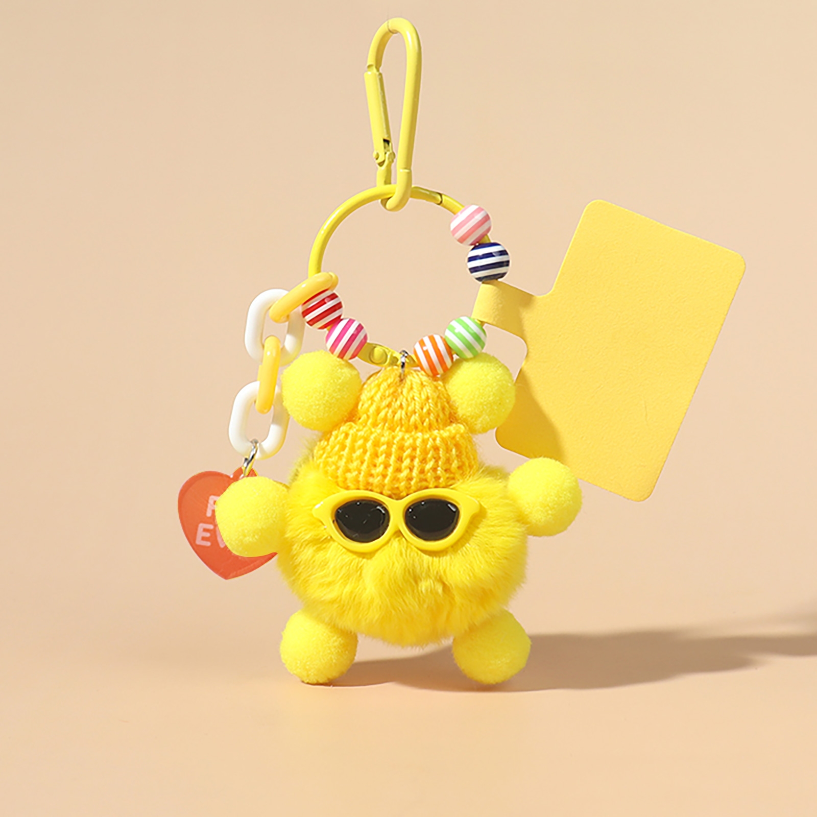 WB-UN-0057-2656YE Cute Coal Ball Keychain - Fluffy Phone Charm - Yellow (1PCS)